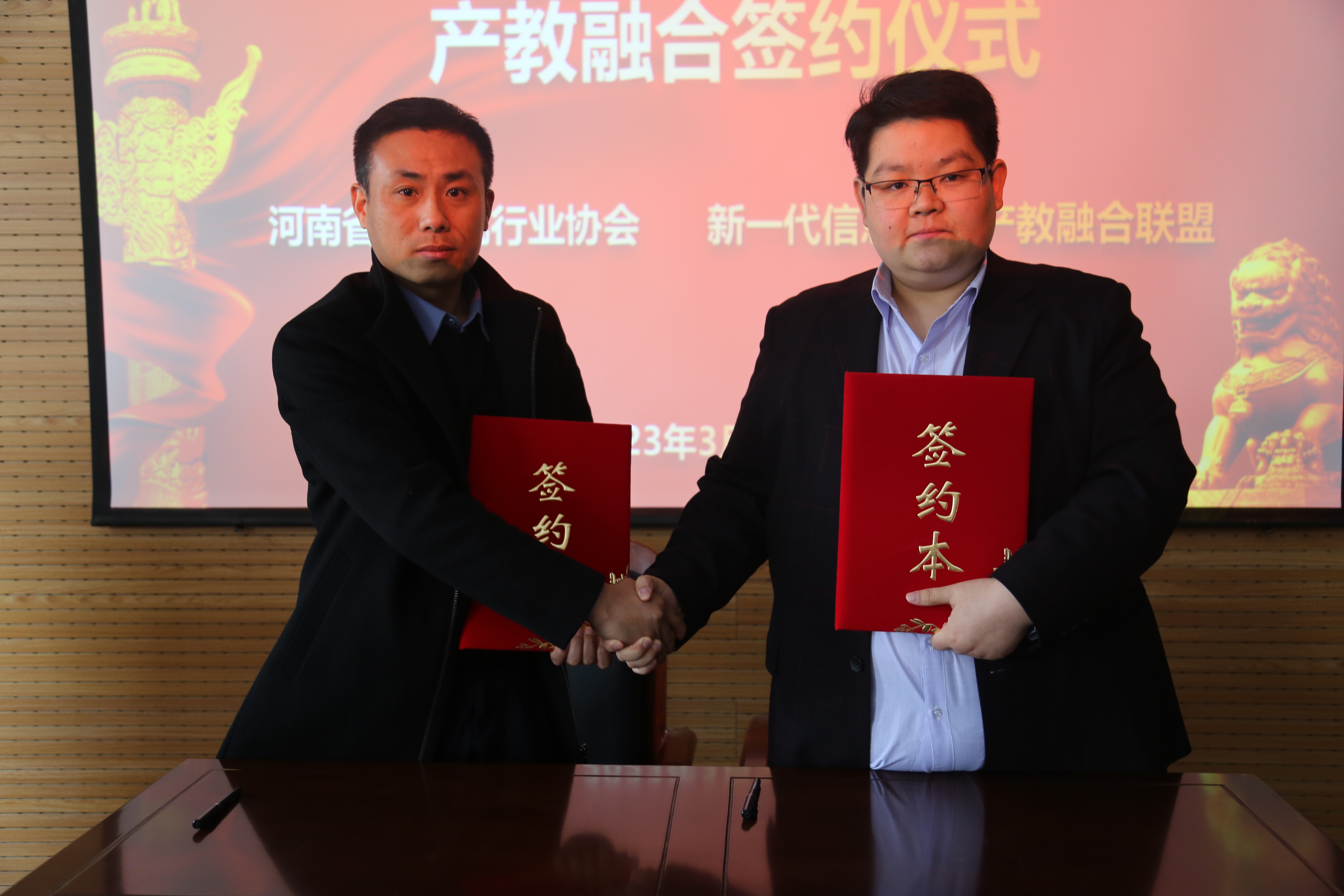 为深化联盟产教融合工作、扩展产教融合领域,联盟副秘书长赵小楠代表联盟分别与河南省物联网行业协会、河南省人工智能学会、河南省民营企业协会以及河南省计算机行业协会四家单位签署双方合作协议。