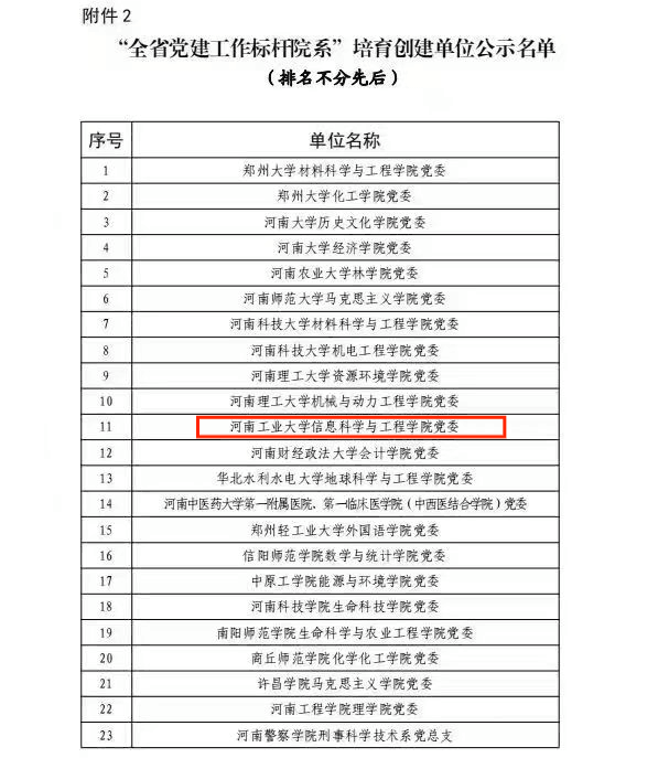 党委入选“全省党建工作标杆院系”培育创建单位。各培育创建单位建设周期为两年。