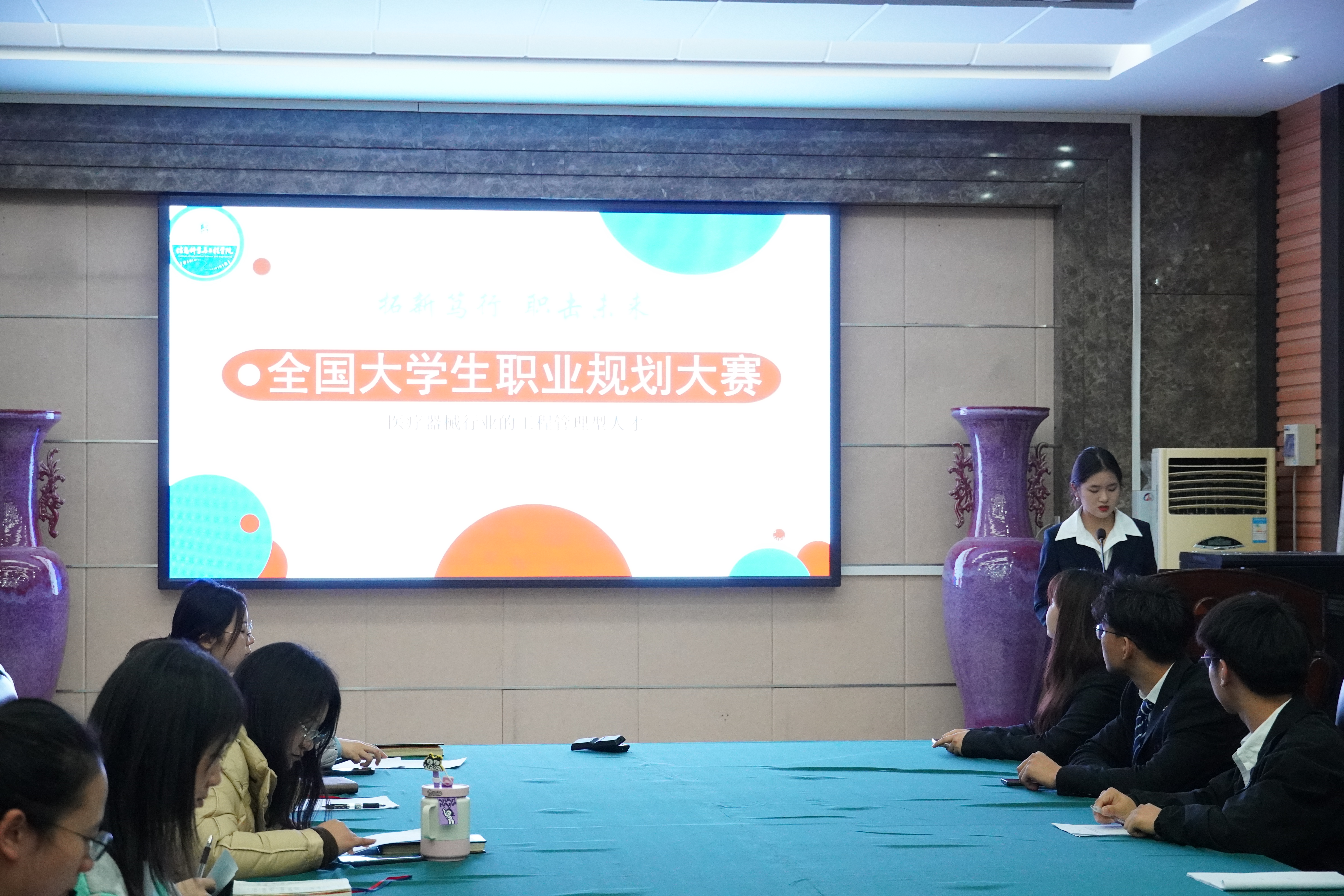 在6225会议室举办第十四届大学生职业生涯规划大赛院赛。学院团委书记刘磊、学工办副主任崔莉莎、各年级辅导员和参赛选手参加了大赛,大赛由辅导员王璐老师主持。