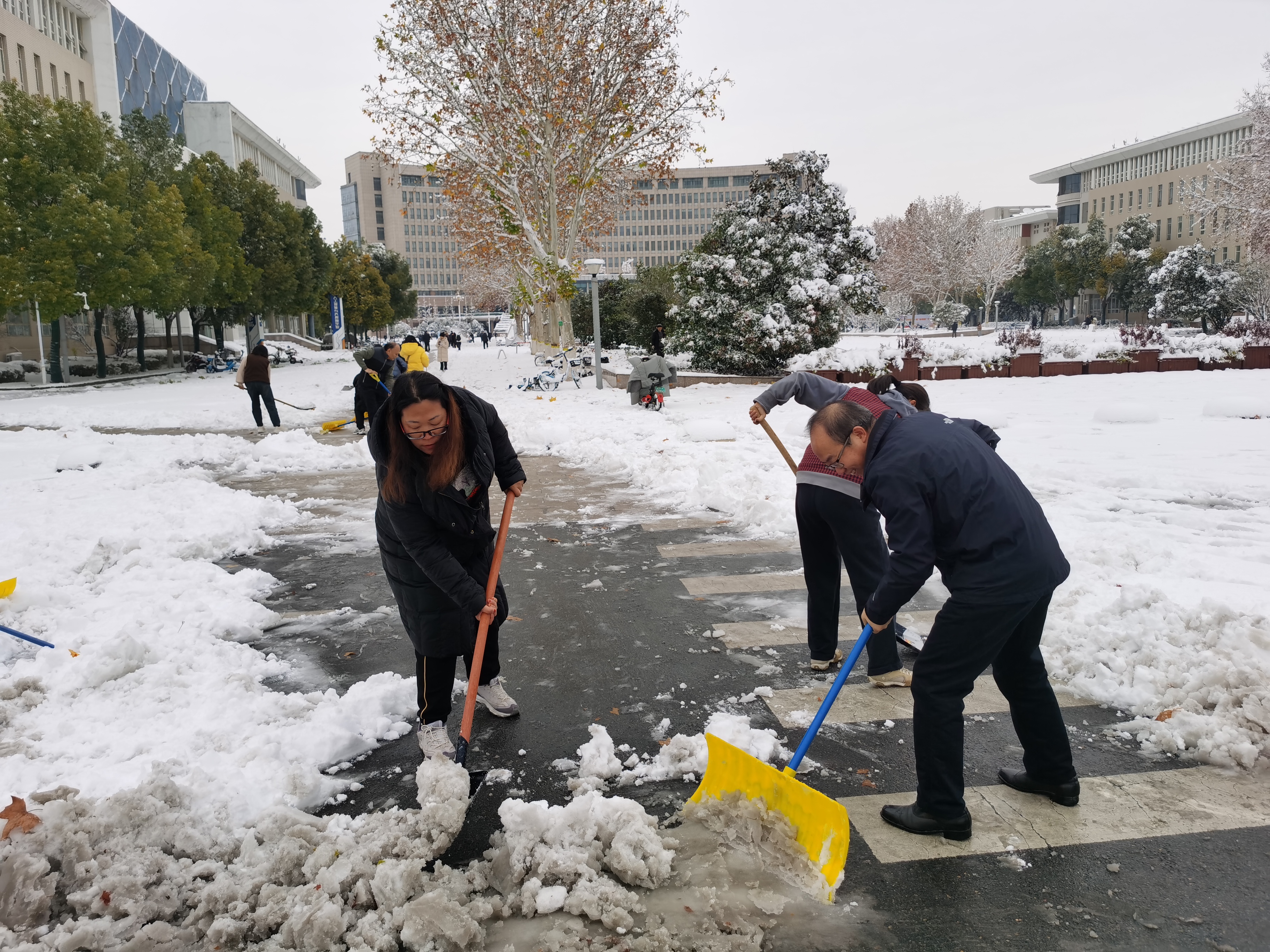 立即组织行政人员和部分在校老师对惟学楼(6号楼)周边区域进行了冰雪清扫工作。