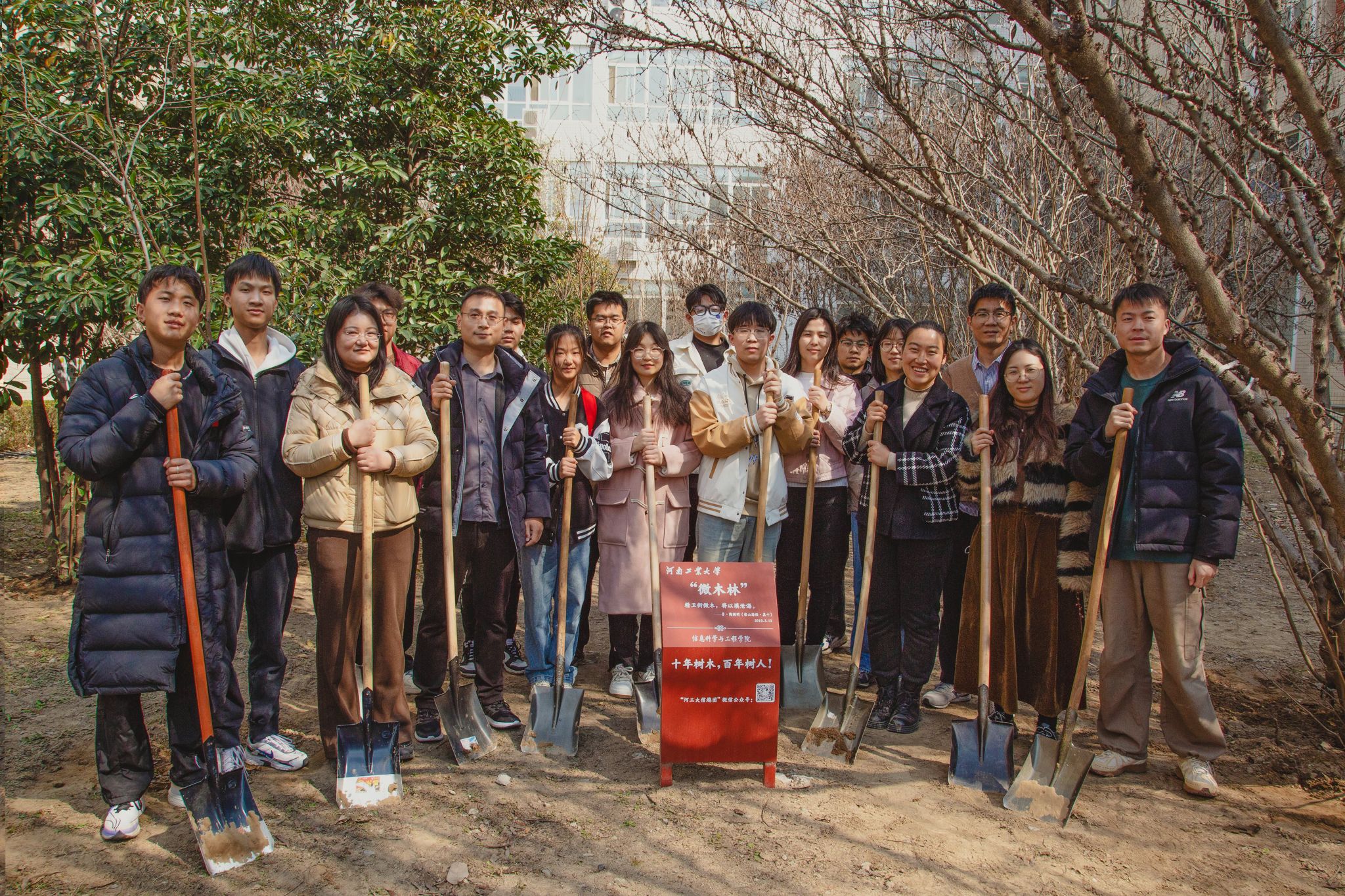 全体辅导员、各系任课老师带领学生在惟学楼西侧的“微木林”开展以“植树催浓春意,播绿造福校园”为主题的植树活动,共同为学校添新绿作贡献。