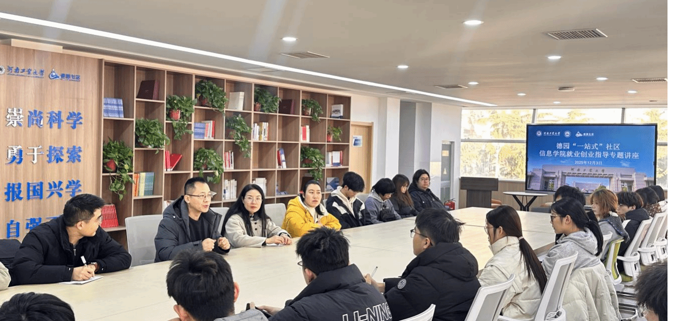 在德园一站式社区成功举办就业创业指导讲座。本次讲座邀请资深就业指导教师吕宗旺教授担任主讲嘉宾。学院党委副书记魏雪芹、学工办主任崔莉莎与30余名学生共同参与。活动由侯森老师主持。