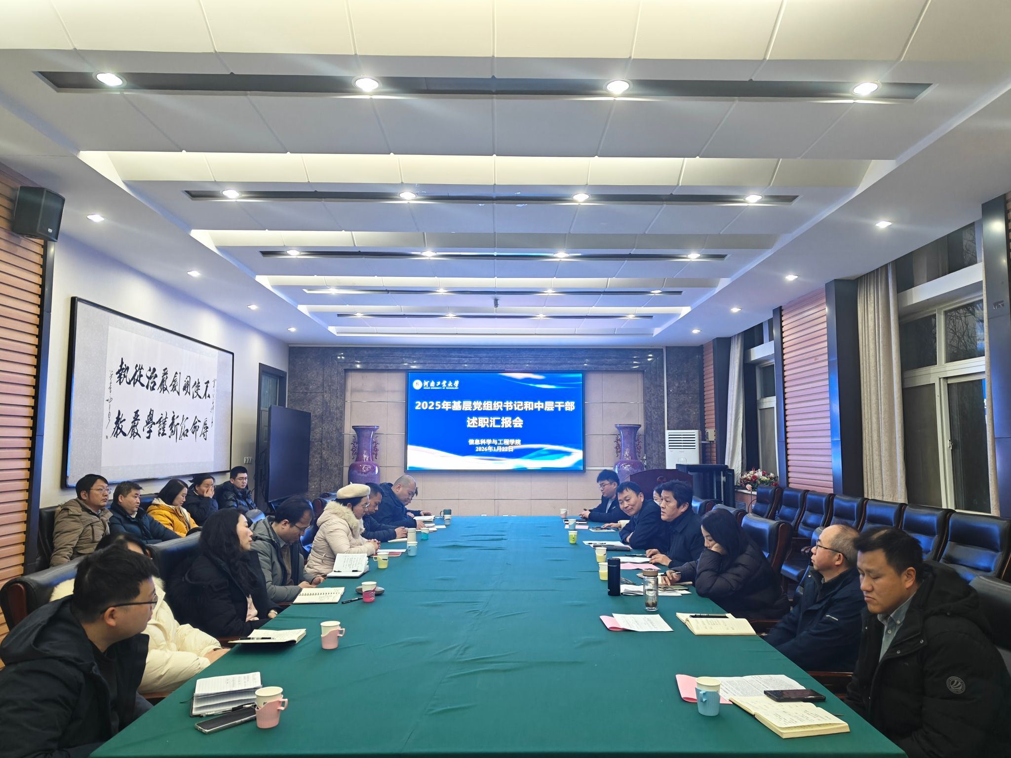 在惟学楼6225会议室召开2025年度基层党组织书记和中层干部述职汇报会。学院党政领导班子全体成员,各基层党组织书记、各科室负责人及系中心主任参加会议。学院党委书记郭晓旻主持会议。