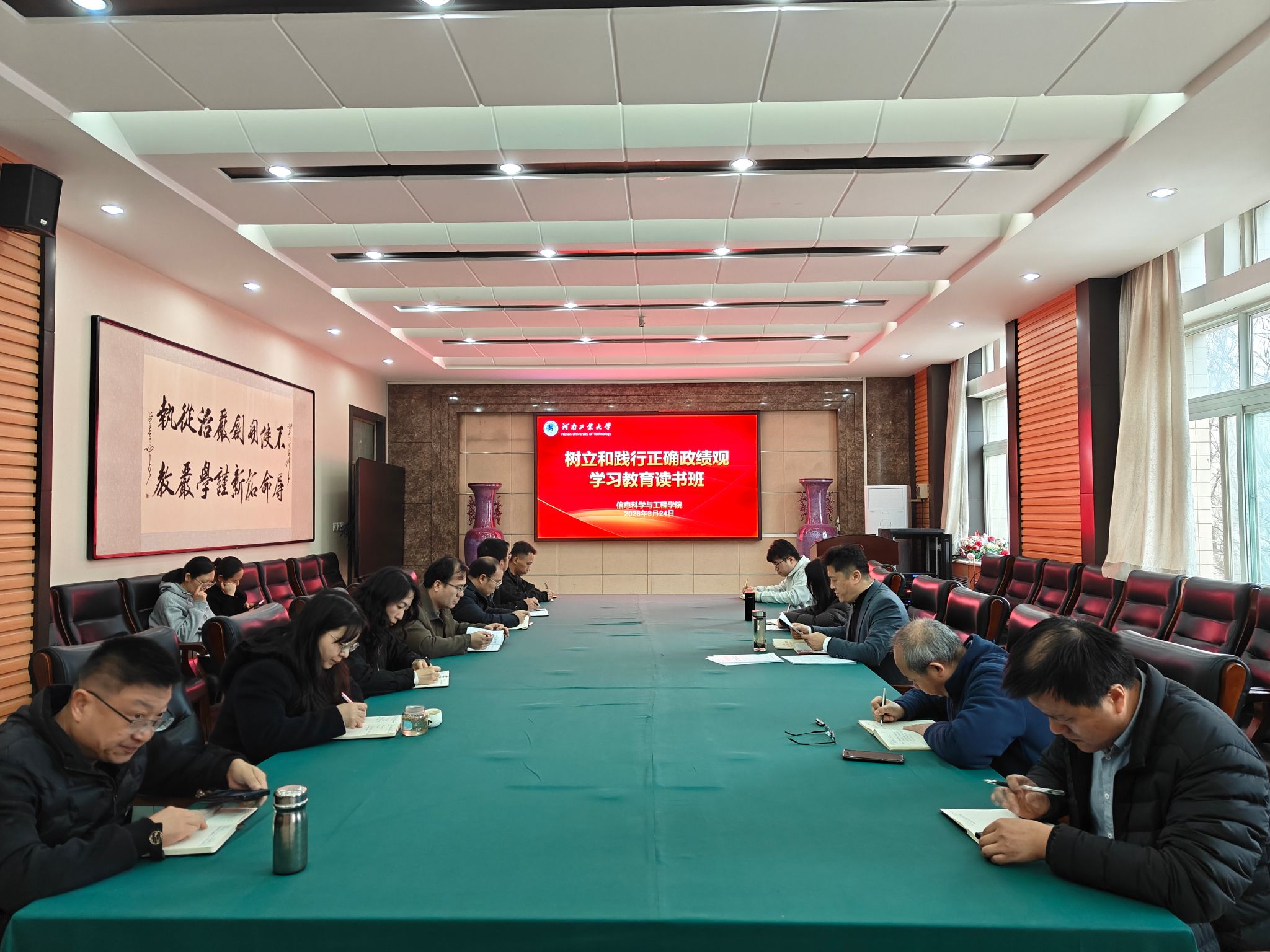 在惟学楼6225会议室举办树立和践行正确政绩观学习教育读书活动。学院领导班子成员、全体中层干部参加学习,会议由学院党委书记郭晓旻主持。