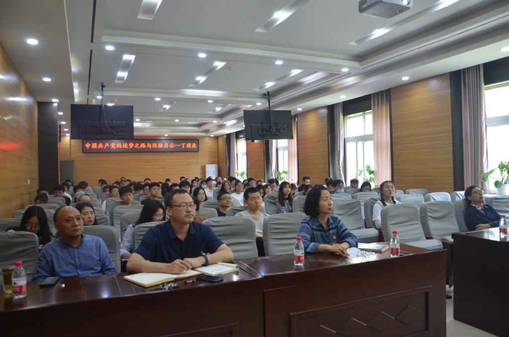 会上,丁建波从山河破碎与百年逐梦、党的成立与“民族独立、人民解放”之梦、党的探索与“国家富强、人民富裕”之梦、党的新征程与“中华民族伟大复兴”之梦、百年逐梦与经验启示五个方面对中国共产党为实现中华民族伟大复兴的百年征程进行了详细的介绍,阐述了中国共产党的革命史、发展史、奋斗史,系统解读了为什么只有中国共产党能够带领中华民族取得胜利,走向伟大复兴。丁建波表示,逐梦之路是理想信念的伟大远征,作为高校教师,要以强烈的历史担当扛起新时代教育事业的使命和责任,在弘扬和传承党的初心与使命过程中,坚定理想信念,做学生的领路人和知心人。