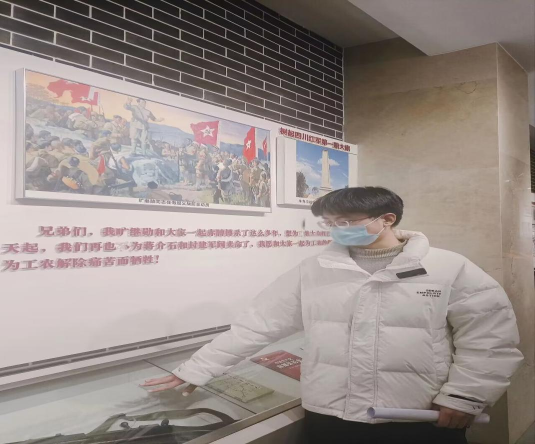 为回顾中国革命事业,感受中国共产党人“不忘初心、牢记使命”的奋斗精神。2月1日“踔厉奋发,勇毅前行”实践团队成员黄士博来到旷继勋公园,回忆当年的蓬溪起义,探寻“革命熊熊火种、红旗处处飘扬”的难忘历程。