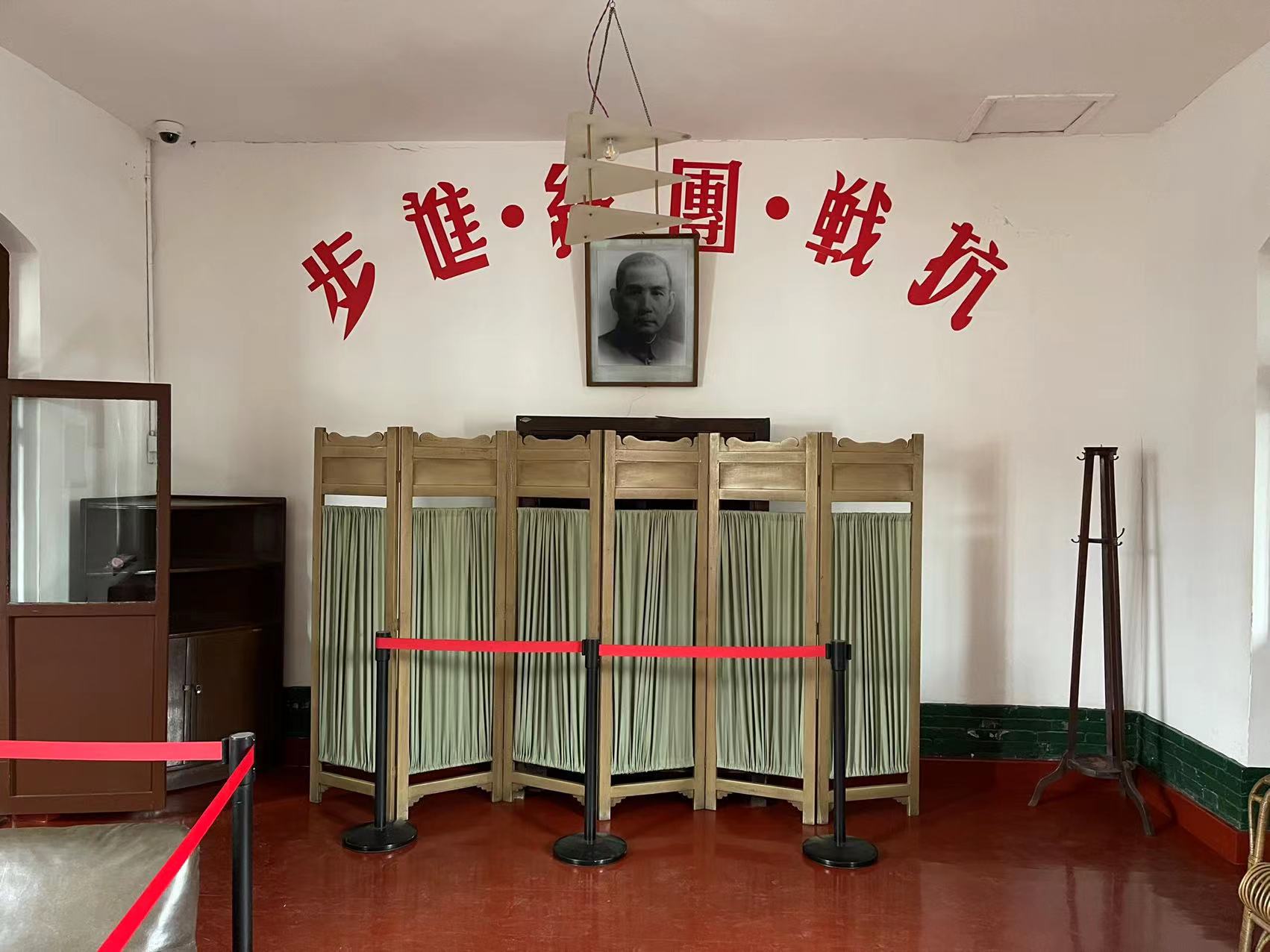 随着步伐的深入,一副八路军与敌人斗智斗勇的图册缓缓展开。在第二院与第三院的大房内有一个向地下延伸的窄小楼梯,楼梯的宽度仅容一人通过,扶墙而下,里外两间屋子顶墙一字排开搭的床铺,在屋子正中的位置还挖了一个地道,看说明才知道革命战士们曾在这里将我党的重要信息通过发报机秘密传送出去,为了不被反动分子听到机器发报时的声音,我党战士用厚厚的棉被一层层地叠放在这个洞口。回到地上,我们又参观了我党领导人商讨方针政策,进行战略部署的会议室;为了丰富党员和群众文化生活的救亡室,保障基本生活需求的厨房和库房。