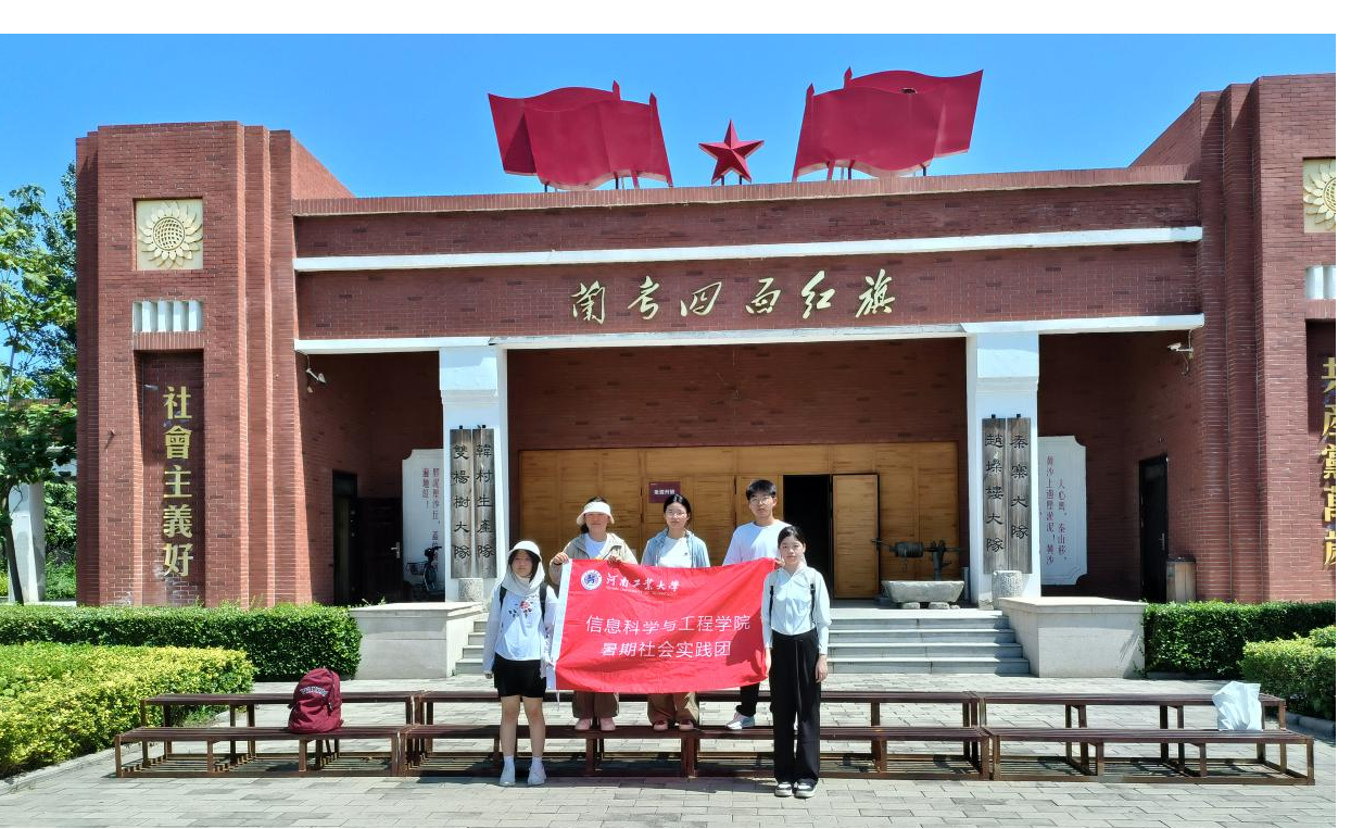 “焦桐常青队”暑期社会实践团队在兰考四面红旗纪念馆进行实践活动。团员们在展馆内拾取红色记忆,学习红色精神。