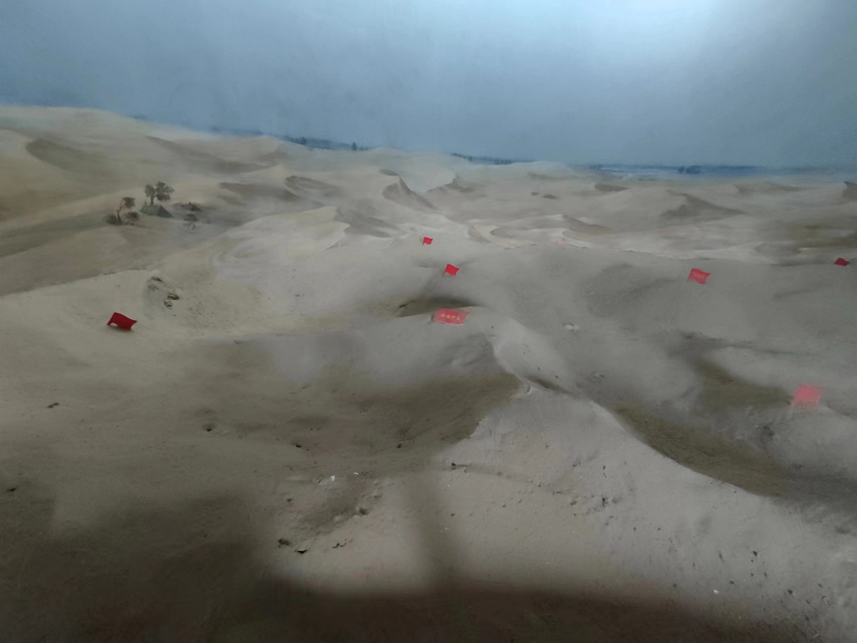“四面红旗”分别指的是秦寨的决心、赵垛楼的干劲、韩村的精神、双杨树的道路。队员们进入馆内,映入眼帘的是一大片沙土区,模拟当时饱受风沙、盐碱、内涝“三害”之苦的兰考。