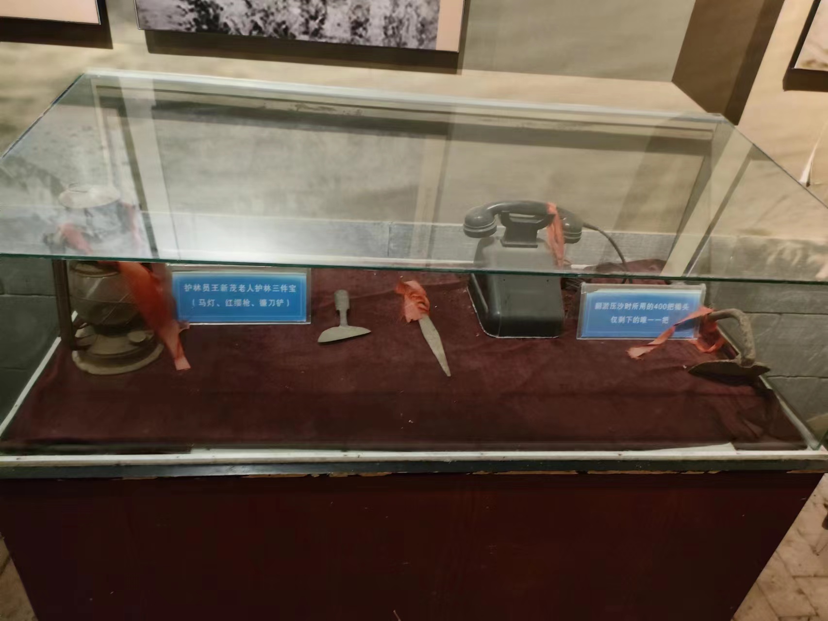 首先经过张庄治沙展览,一段段文字、一张张图片、一件件展览品使队员们了解张庄是如何从沧桑岁月经过奋斗历程取得丰收乐章的。是焦裕禄带领广大人民群众采用“贴膏药”、“扎针”、翻淤压沙的方法,经过一个时期的奋战,封住部分沙丘、同时疏通了河道,使过去的荒沙地变成了良田。