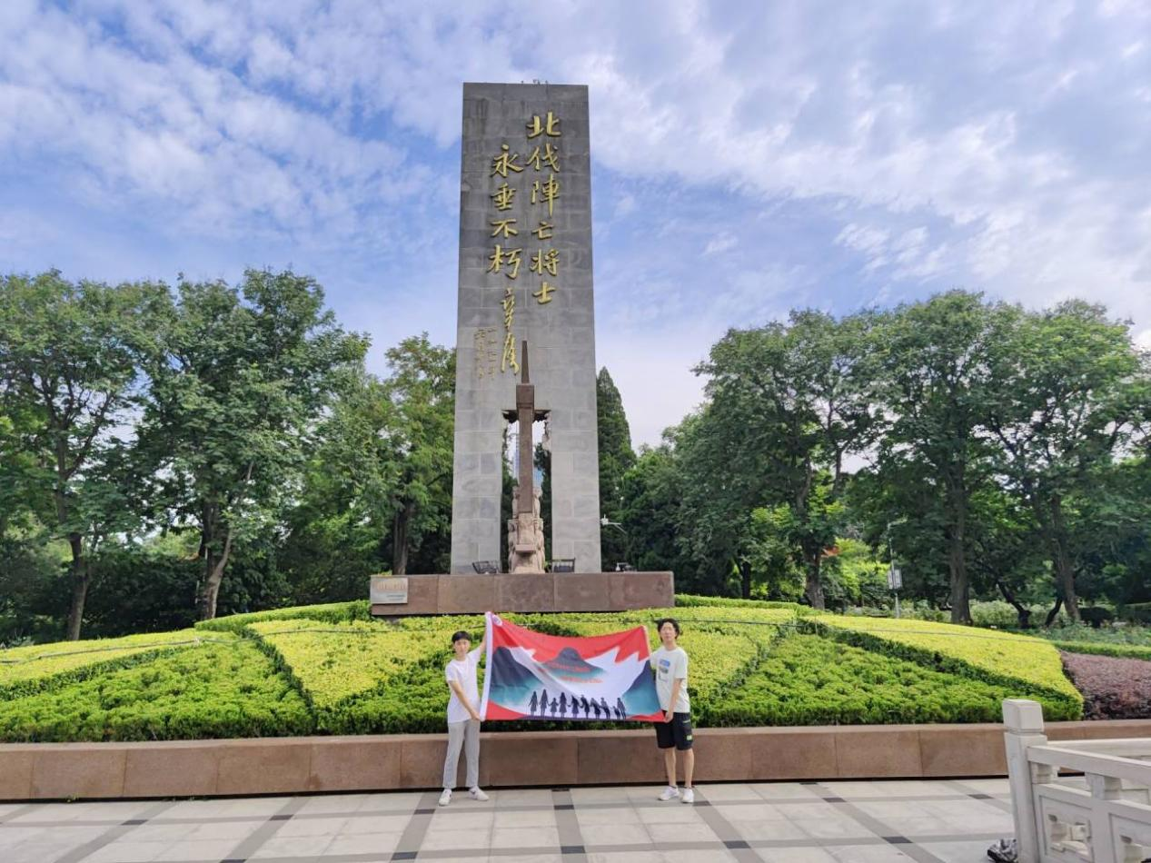 “拼搏成就,筑梦繁星”实践团队成员王怿玮、程科雯、李峥岩,来到了郑州碧沙岗公园北伐战士纪念碑,进行学习北伐精神社会实践活动。