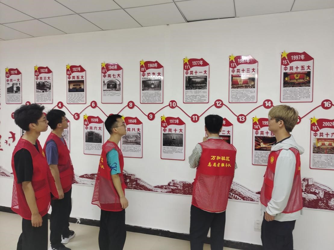 下午,实践小队在万和城社区党群服务中心学习了党的精神,深入了解了党的历史、理论、路线、方针、政策等内容,增强了对党的信仰和忠诚。实践小队还参观了万和城社区的建设情况,赞扬了社区的环境优美、设施完善、服务周到、管理规范等特点。实践小队还主动参与了社区的卫生清扫工作,用实际行动为社区贡献自己的力量。