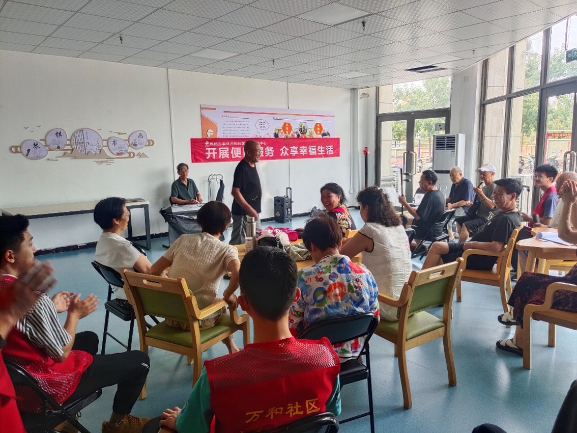 上午,实践小队在万和社区党群服务中心举办了一场老年人“音乐会”,为社区的老人们带来了欢乐和温暖。音乐会上,实践小队成员和居委会准备了板胡、三弦、电子琴、板鼓、梆子等乐器,和社区老人一同进行了一场质朴无华的豫剧演奏。演奏结束后实践小队虚心向老人请教了豫剧的演奏乐器、形式、历史等相关知识,从中受益匪浅。