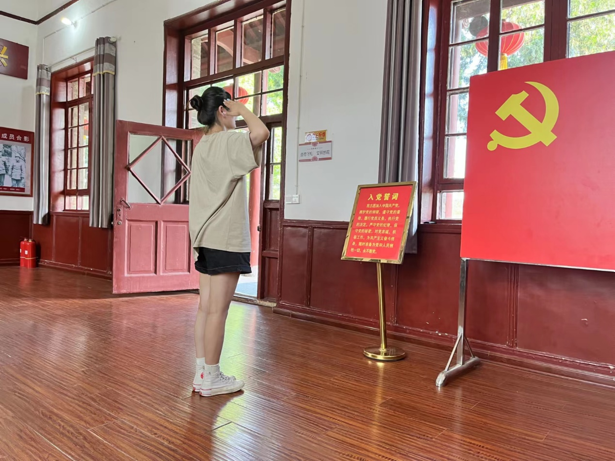 在这所纪念馆中,不仅有着许多淮海战役场景的详细介绍,有着许多与当时相关的照片,还设有党旗,英雄人物的塑像。这塑像的前面则刻着走向胜利的字样,先辈们为祖国统一奋斗的目标已经成功,在经过党旗时,小队成员庄重地抬起手,严肃地读起了入党誓词。