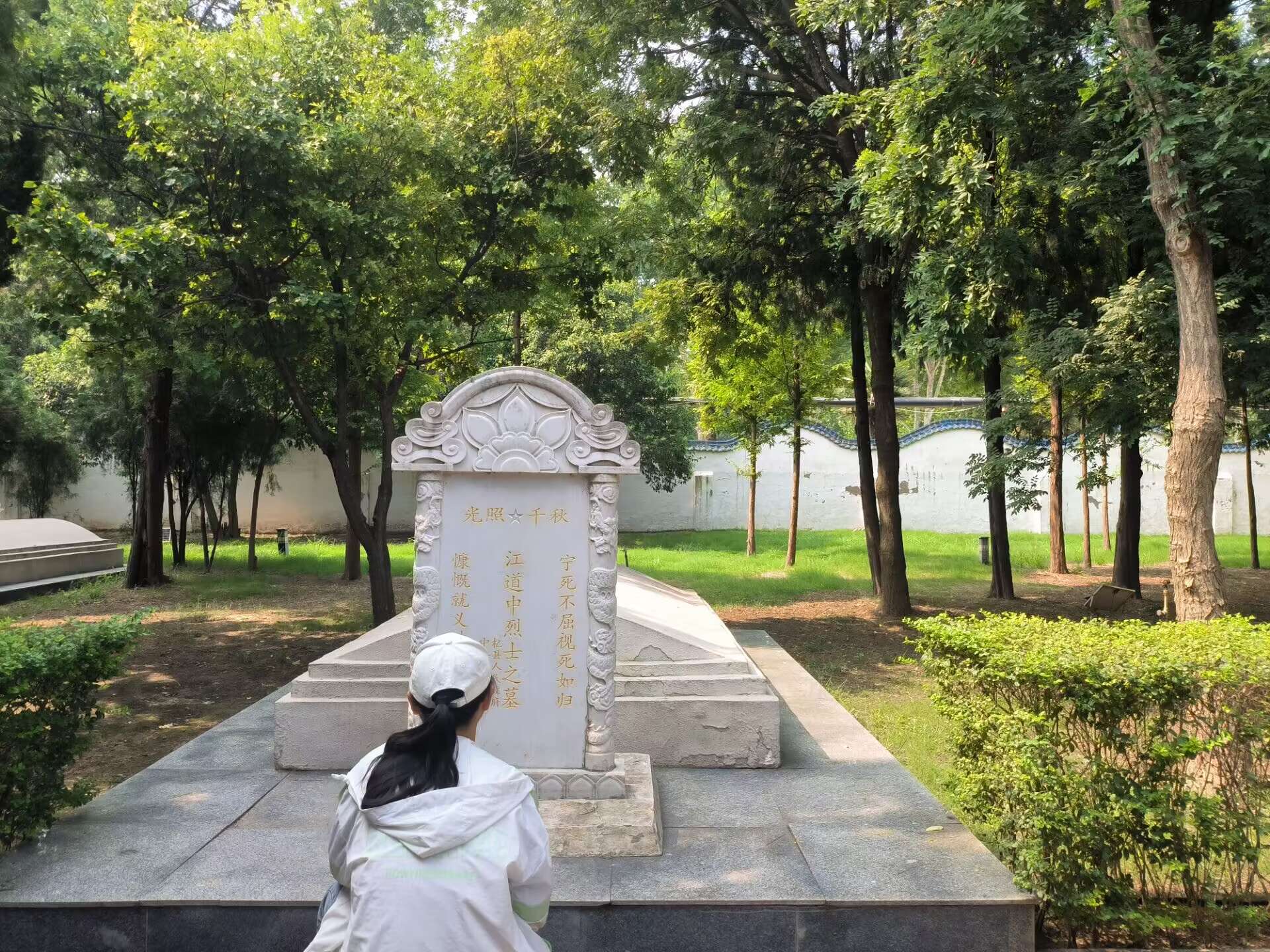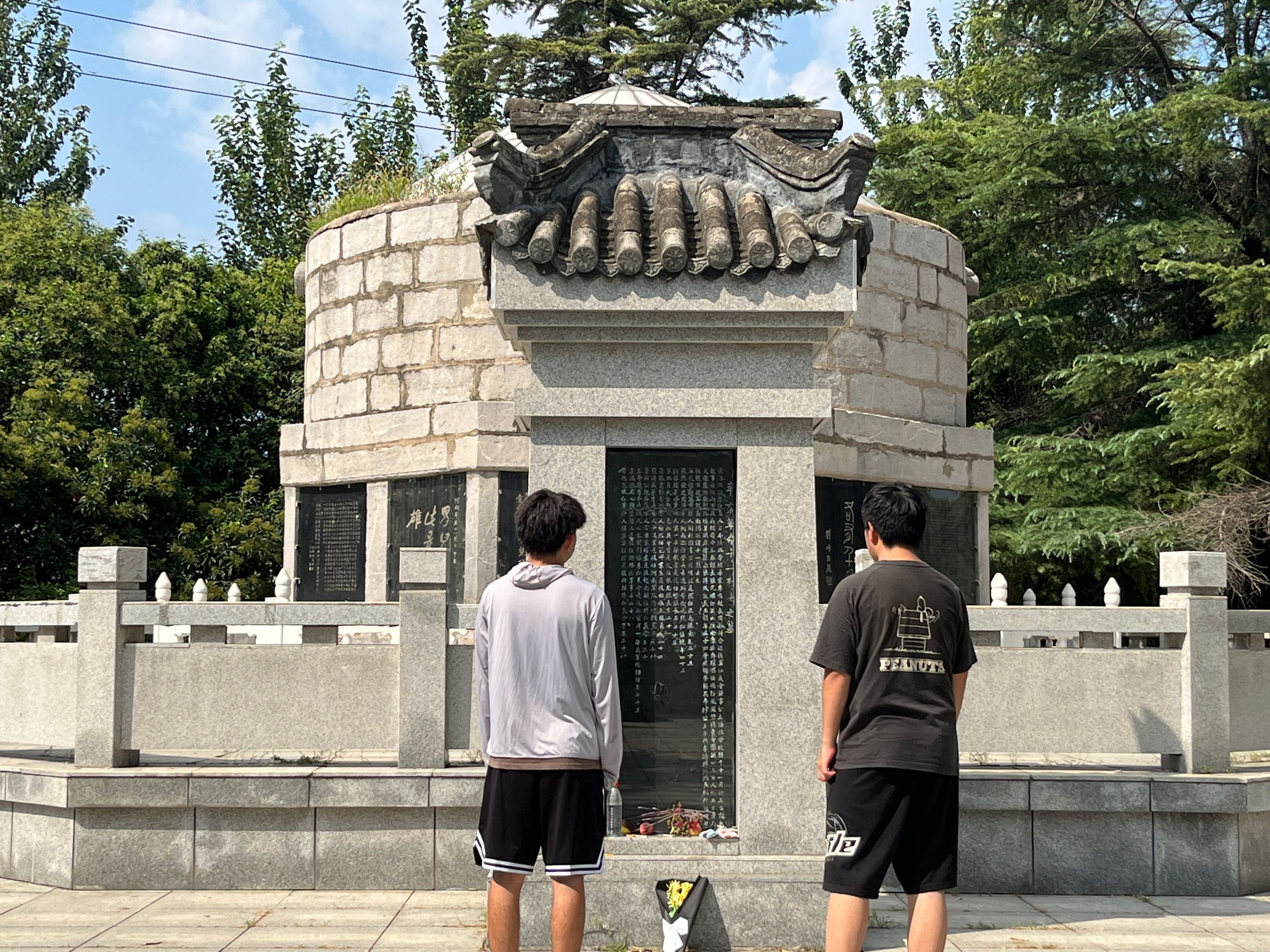8月17日上午,实践团来到了杞县烈士陵园,实践团成员祭拜了烈士墓碑,对在这片曾是战火连连的土地上保家卫国,不畏牺牲的先烈表示深深地致敬与哀悼,陵园坐南面北,庄严的大门上方一排金色的大字熠熠生辉:水东烈士陵园。周围千百棵树木和花草日夜陪护在烈士们的身边。盛夏,为他们遮阳;寒冬,为他们御寒。它们是一片天然屏障,守卫着烈士们的安宁。