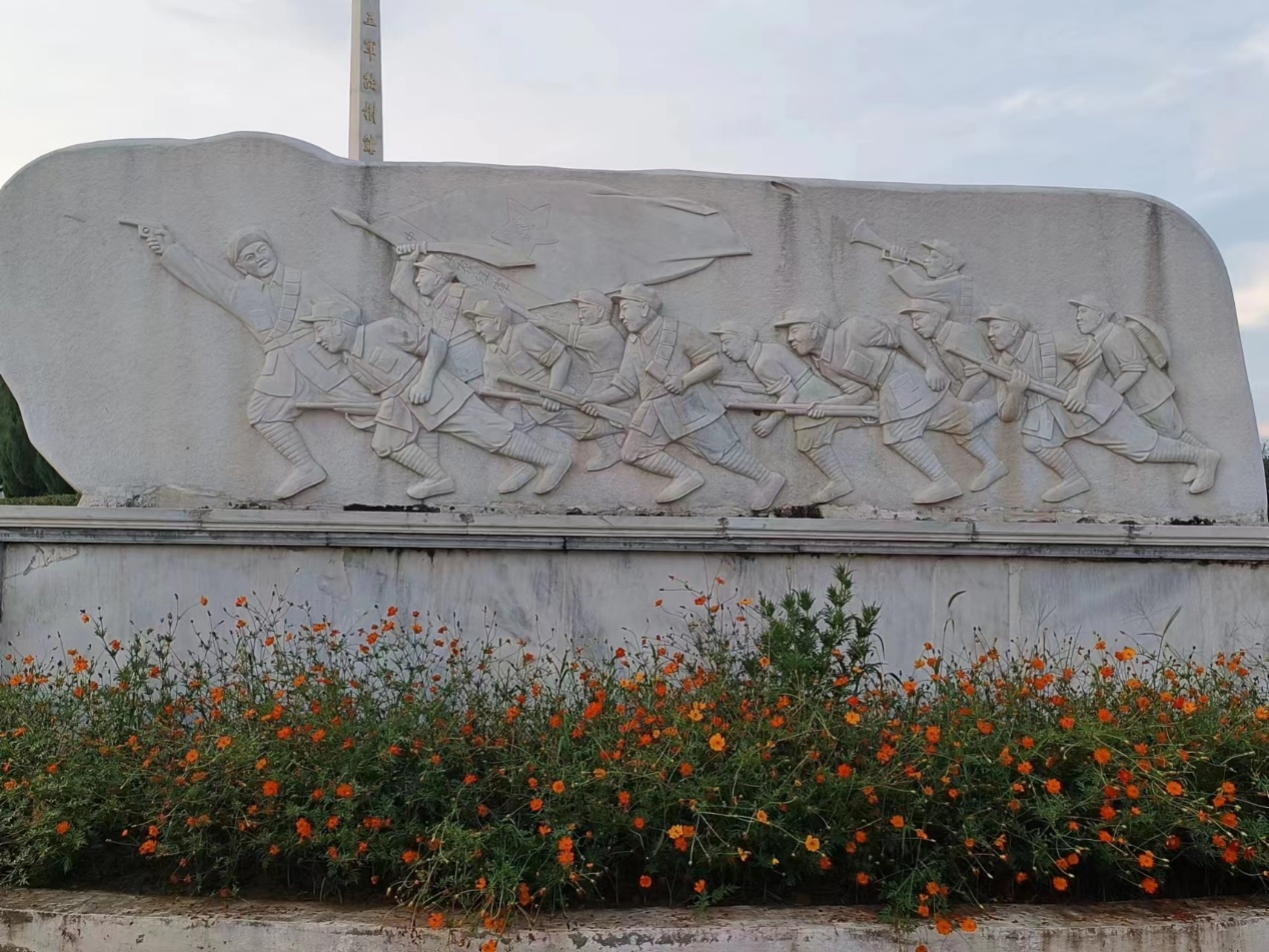 最后,小队来到纪念碑前面,纪念碑形如刺刀,蕴含血战之意,碑身25.34米,蕴含红二十五军的番号和1934年的时代背景。小队成员向纪念碑三鞠躬,向各位革命烈士表达深切的哀思。