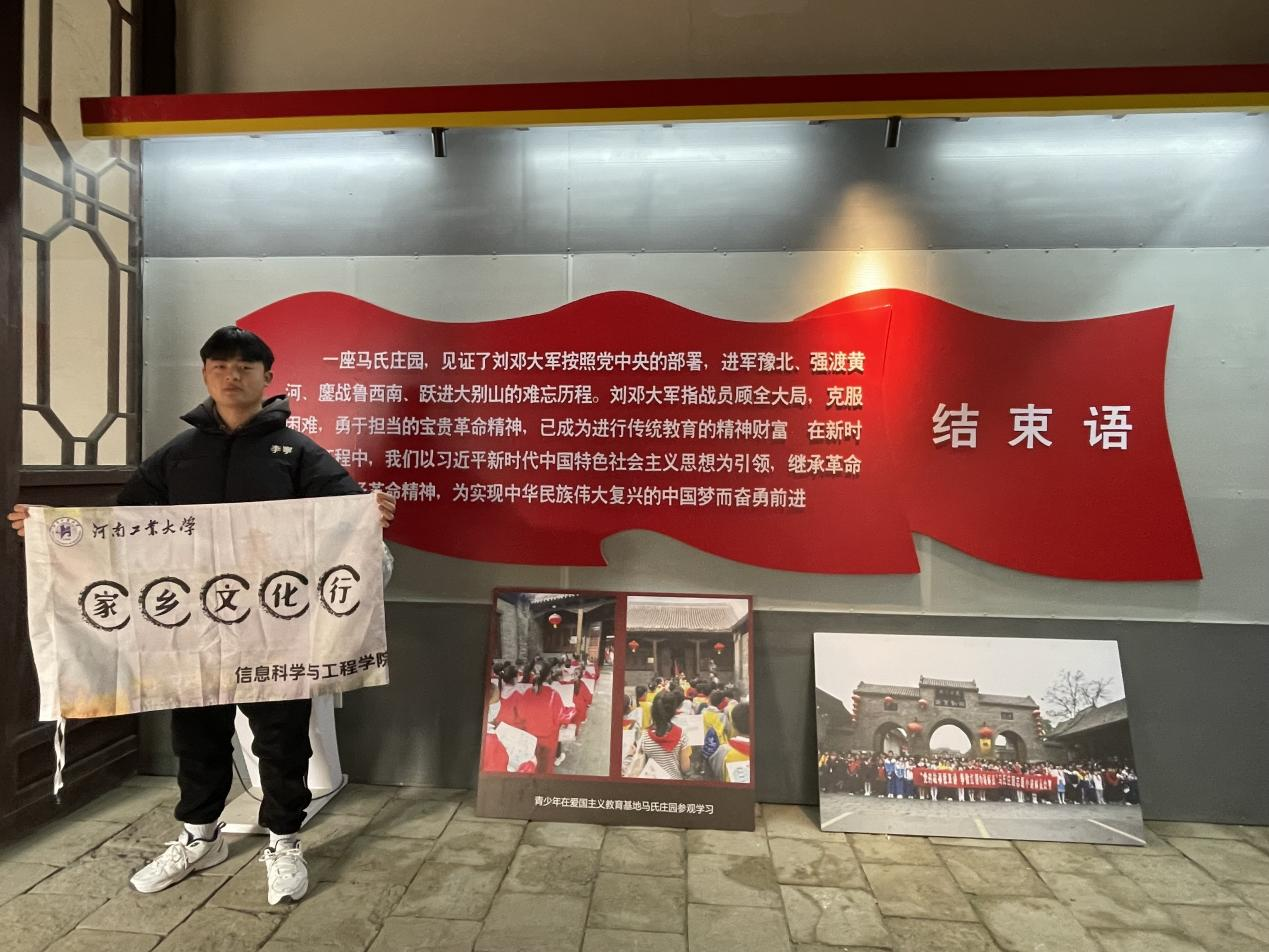 “家乡文化行”寒假实践活动团队前往刘邓大军千里挺近大别山的出发地:河南安阳马氏庄园参观学习。团队成员们在这里重温红色历史,感悟革命精神,深入了解马氏庄园的历史意义,特别是它与刘邓大军千里挺进大别山的历史事件之间的紧密联系。