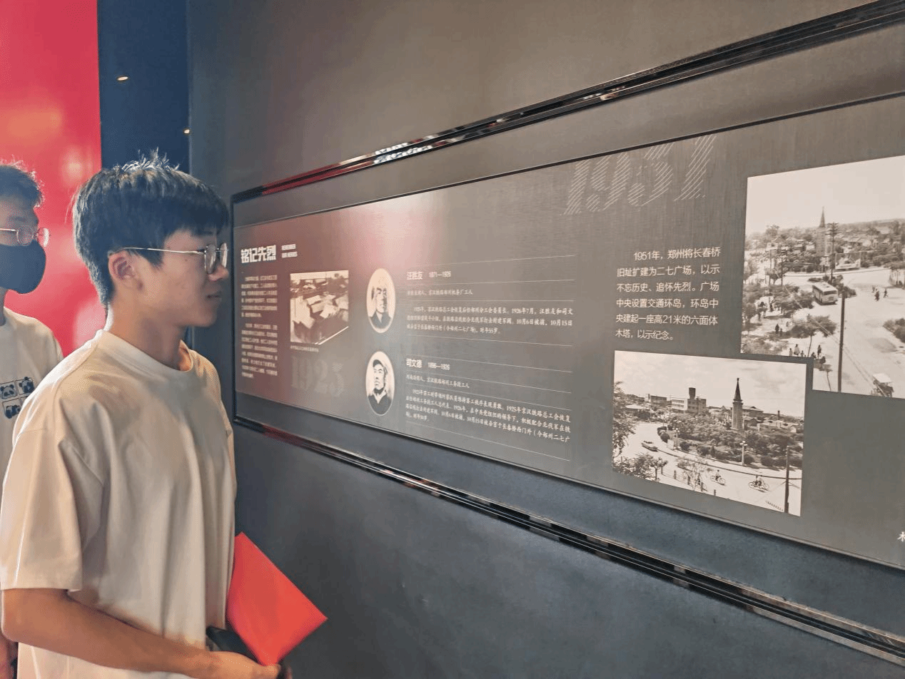 进入纪念馆后,队员们首先参观了序厅。通过序厅墙上展示的历史图片和文字,团队深入了解了二七大罢工的背景和深远意义。在那时,郑州的工人们为了捍卫自身权益和反抗帝国主义的侵略,勇敢地走上街头,发出了震撼人心的呼喊。他们的抗议行动不仅在中国工人运动史上留下了浓墨重彩的一笔,更为中国共产党的发展壮大奠定了坚实基础,为我们今天的生活带来了重要的历史启示和影响。