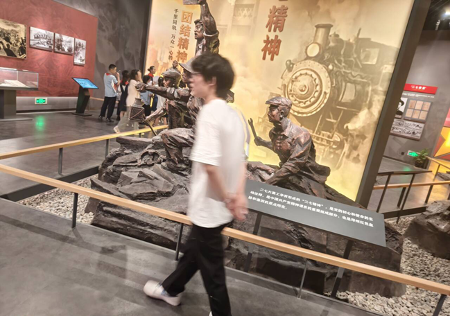 在纪念馆内,团队成员们被丰富的展品、生动的解说及逼真的场景还原深深吸引,尤其是那富含工人们激昂情感的二七大罢工雕塑,它无声地诉说着那段艰苦卓绝地斗争历程,在参观过程中,仿佛能听到那遥远的口号声、看到工人们坚定的眼神、感受到那份为了争取自身权益而不懈努力的决心。走在馆中,成员们的心早已随着这些文物史料飞往先辈们存在的时代,每一份资料的翻阅,都使得成员们被这些英勇无畏的先辈所展现出的精神力量所震撼,也被那段波澜壮阔的历史所打动,对比以往沧桑艰苦的生活,也深知了当下和平生活的来之不易。离开纪念馆后,团队成员开始进行采访。在采访过程中,访客们纷纷表示深受震撼与启示,他们被革命先烈们为了民族独立和人民解放而不懈奋斗的精神所感动,也更加深刻地认识到了今天幸福生活的来之不易。