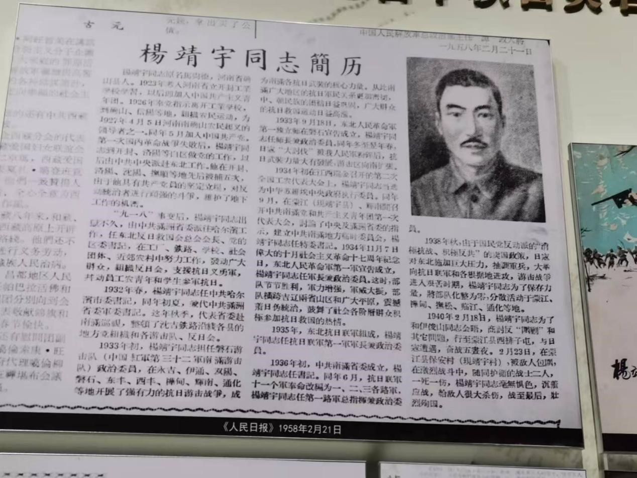 杨靖宇将军的事迹激励了一代又一代的中国人,成为了中华民族解放斗争史上的光辉篇章,他的优秀品格催人泪下,令人动容,正如纪念馆中的结束语所言“他的精神与日月同辉,与山河同在”。