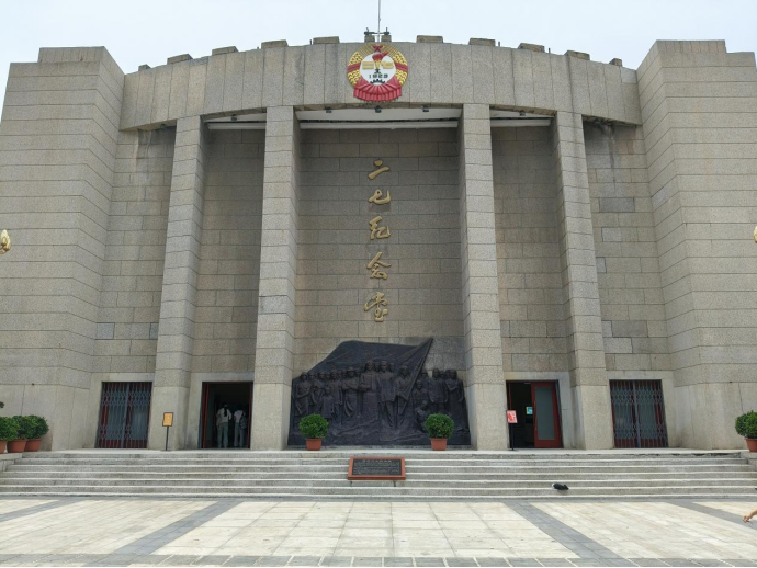 随后,团队来到二七纪念堂参观。二七纪念堂建筑座西面东,青砖垒砌,屋面红瓦覆盖,正中上方为堂徽,下是二七罢工铸铁浮雕。南楼为“二七史迹陈列馆”,北楼为“活动楼”。它由青砖垒砌,尖顶,红瓦屋面,是一座砖木结构的纪念性建筑。这是新中国最早的纪念性建筑之一。
