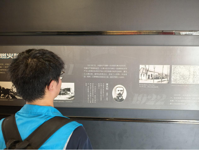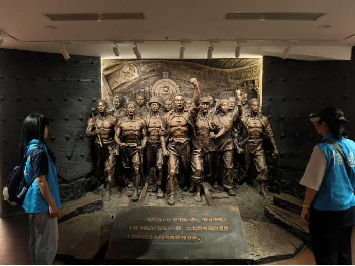 二期纪念馆共分为十层,每一层都介绍了不同时期的发展。团队进入二七纪念馆参观学习的过程中,无时无刻不在为历史洪流中每一个伟大而又渺小的英雄而感动,感受团结互助、无私无畏的革命精神和爱国主义精神。在实践过程中,成员们不仅加深了对二七烈士革命事迹的了解,同时也增强了对爱国主义精神的理解和认识。