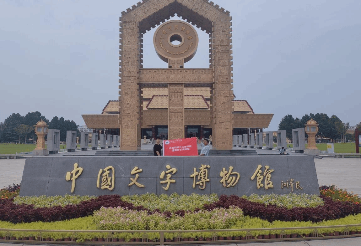 “家乡记忆:传承与创新”暑假社会实践团队来到了中国文字博物馆。首先映入眼帘的是广场上那巨大的标志性建筑,它以甲骨文“字”的造型为基础,古朴而大气,仿佛在向人们诉说着文字的源远流长。
