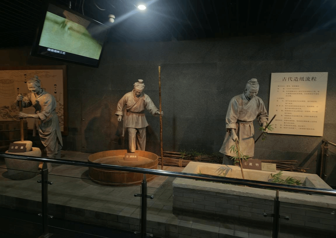 随后,小组成员深入了解了古代造纸流程。在展示区域,通过逼真的模型和详细的解说,仿佛穿越回了古代,亲眼目睹了古人如何从原材料一步步制作出纸张。他们精心挑选纤维原料,经过繁琐的浸泡、蒸煮、打浆等工序,最终将纸浆制成一张张薄而坚韧的纸张。造纸术的发明不仅推动了中国文化的繁荣发展,也对世界文明的进程产生了重大影响。它传播到世界各地后,极大地改变了人们的书写方式和信息传播方式,为人类文明的进步奠定了坚实的基础。