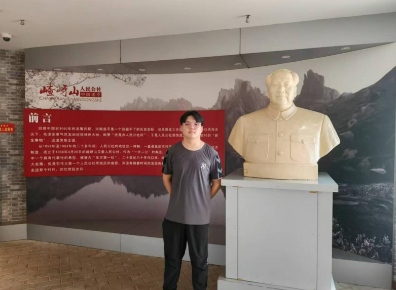 8月24日中午,社会实践团队成员张顺然前往嵖岈山卫星人民公社博物馆。博物馆展示了上世纪60年代中国农村集体化运动的重要历史资料和实物,重点介绍了卫星人民公社的创建背景、发展历程及其对当地经济社会发展的影响。团队成员认真听取讲解员的解说,并仔细观察了各类文物和图片资料,深刻体会到那个时代的社会变革与历史背景,意识到老一辈人艰苦奋斗、无私奉献的精神,正是我们这一代年轻人最宝贵的财富。