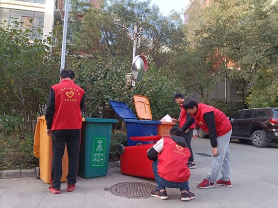 图2 队员在自家楼下进行志愿垃圾分类
