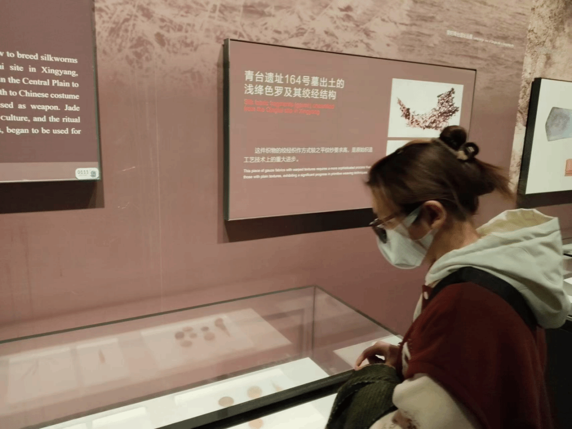 图2 李思娴参观青台遗址展区,了解中原地区早期丝织文化