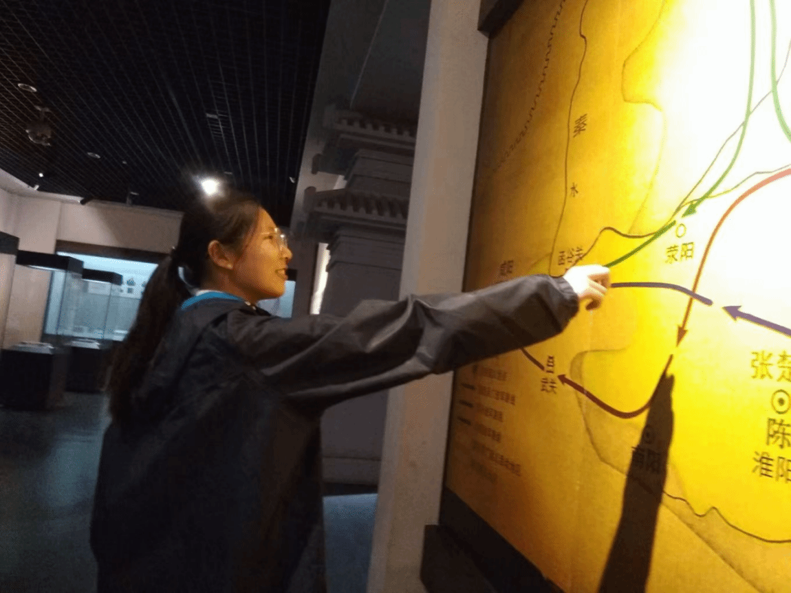 在参观过程中,马晴玉对古代中原地区的军事要地分布产生了浓厚兴趣,尤其是展板上标注的古战场位置和重要关隘。她通过细致的观察和思考,认识到这些地理位置对于国家统一、社会稳定以及文明传承的重要意义。她表示,通过实地参观和学习,深刻体会到了家乡的历史厚重感和文化底蕴,这不仅是河南人的骄傲,也是每一位中华儿女的共同精神财富。