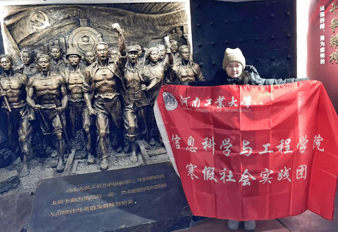 为深入探寻二七故事与二七精神,社会实践队员们怀着崇敬的心情对二七纪念堂“铁路修建”、“星星之火”、“革命烈焰”、“永恒丰碑”、“精神指引”、“传承弘扬”、“红色地标”、“城市记忆”和“百年辉煌”这九个部分进行了详细的参观。在参观过程中,团队成员在二七纪念堂内沿着展览区缓缓前行,仔细观看每一处史料,认真阅读革命先烈的光辉事迹,深刻了解了“二七大罢工”的起因、经过以及深远影响。在参观完二七纪念堂后,团队成员们对二七故事与二七精神进行了深刻的讨论,感受到了工人团结一心、不屈不挠、敢于抗争的革命精神,被工人们的强大力量所感染,也对郑州这座城市有了新的认识。