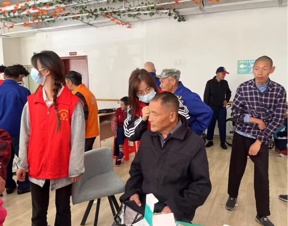 活动中,志愿者们分为生活照料组、文艺互动组和健康关怀组,为老人们提供多项贴心服务。生活照料组的成员在养老院护工的指导下,耐心为老人修剪指甲、梳理头发,并特别开展“暖心耳护”行动,细致地为老人清理耳道,确保操作安全卫生。文艺互动组准备了歌曲、舞蹈、戏曲等节目,与老人们共同合唱经典老歌,现场欢声笑语不断。健康关怀组则通过测量血压、普及健康知识等方式,关注老人们的身体状况。