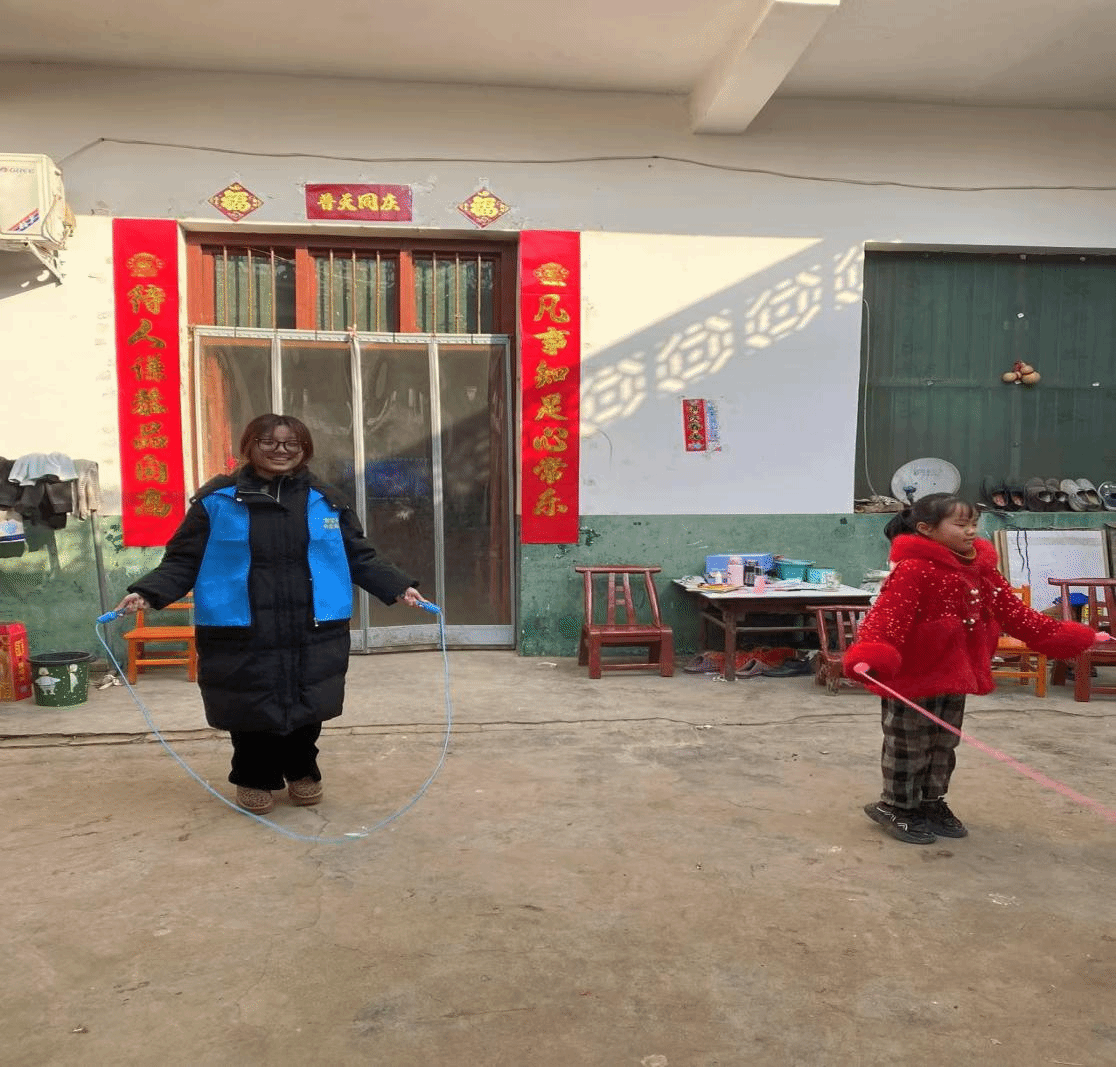在关爱留守儿童方面,团队组织了趣味跳绳活动。成员们陪孩子们做游戏,现场充满欢声笑语。在互动过程中,成员们关注孩子们的内心世界,鼓励他们勇敢表达自己的想法和梦想,询问并关心孩子们的生活和学习状况,向孩子们捐赠学习用品和体育用品,并为孩子们辅导寒假作业,解答学习上的疑惑,给留守儿童带来温暖和关怀。