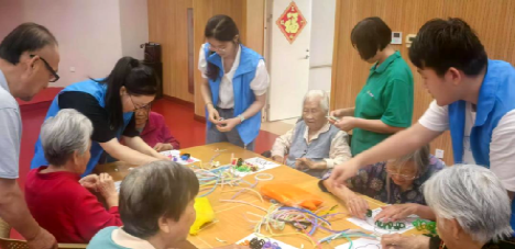 8月27日的手工制作活动充满创意。扭扭棒在指尖弯出自然卷发,粘土被捏成别致衣饰,老人们专注投入,用材料勾勒出生活印记。活动结束后,队员们有序将老人送回房间,再细致清扫场地,收纳工具材料,恢复活动室整洁。