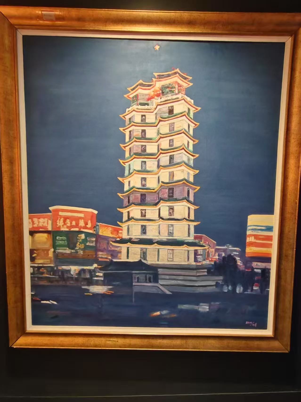 在“红色展馆参观现场”,团队成员身着统一蓝色马甲,穿梭于陈列着老物件、旧照片的展柜间。昏暗空间里,红色展柜如历史火种,点亮过去。大家驻足凝视,从泛黄票证到珍贵文物,试图解码岁月沉淀的故事 。一幅“二七纪念塔油画”,以艺术笔触定格塔的风貌,夜色下的塔身与周边建筑交融,唤起队员们对历史场景的想象,感悟时代变迁中塔的象征意义。