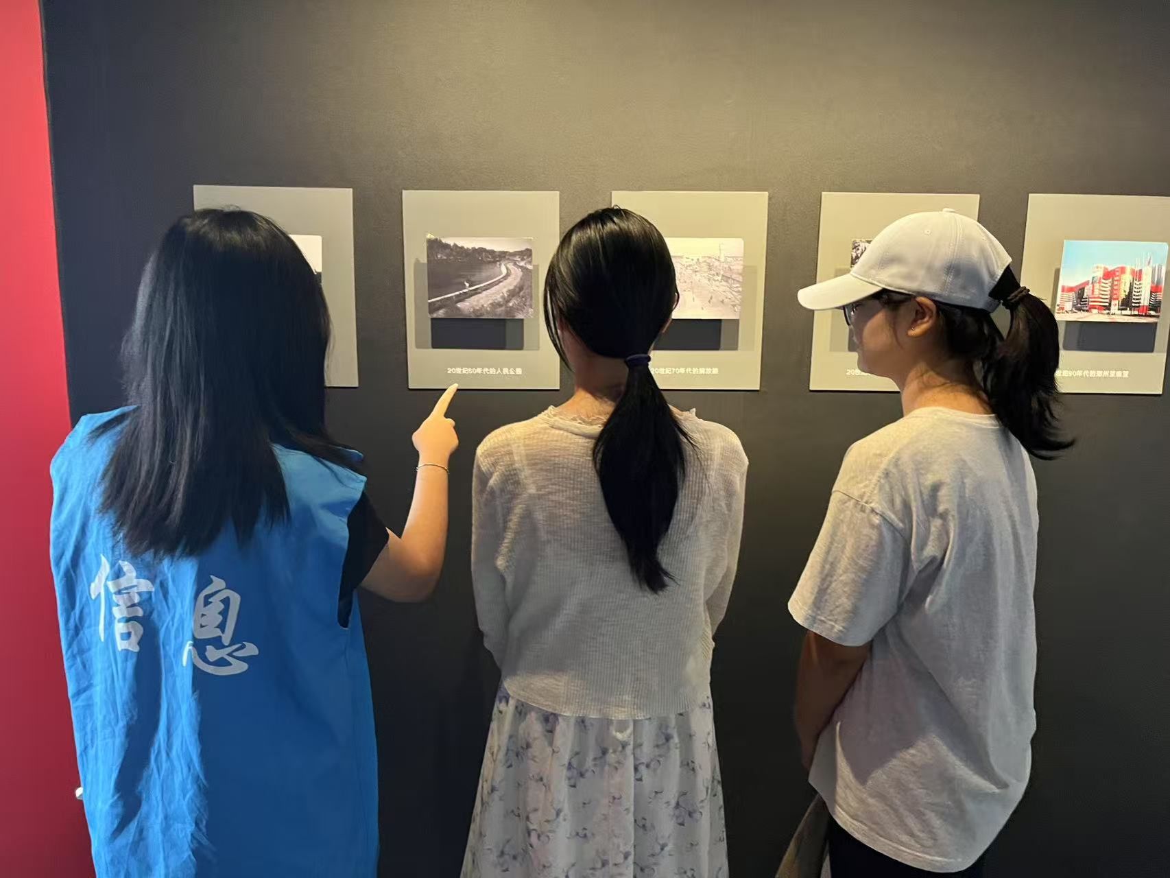“特色展品参观交流” 处,成员们聚焦展柜里的老酒瓶与老照片,蓝色背景、红色展柜形成独特视觉,队员们讨论展品背后的城市记忆,串联起二七历史与市井生活。翻开 “二七纪念塔主题画册”,既有现实中的塔影,也有剪纸艺术呈现的塔貌,传统与现代交织,展现二七文化的多元传承。