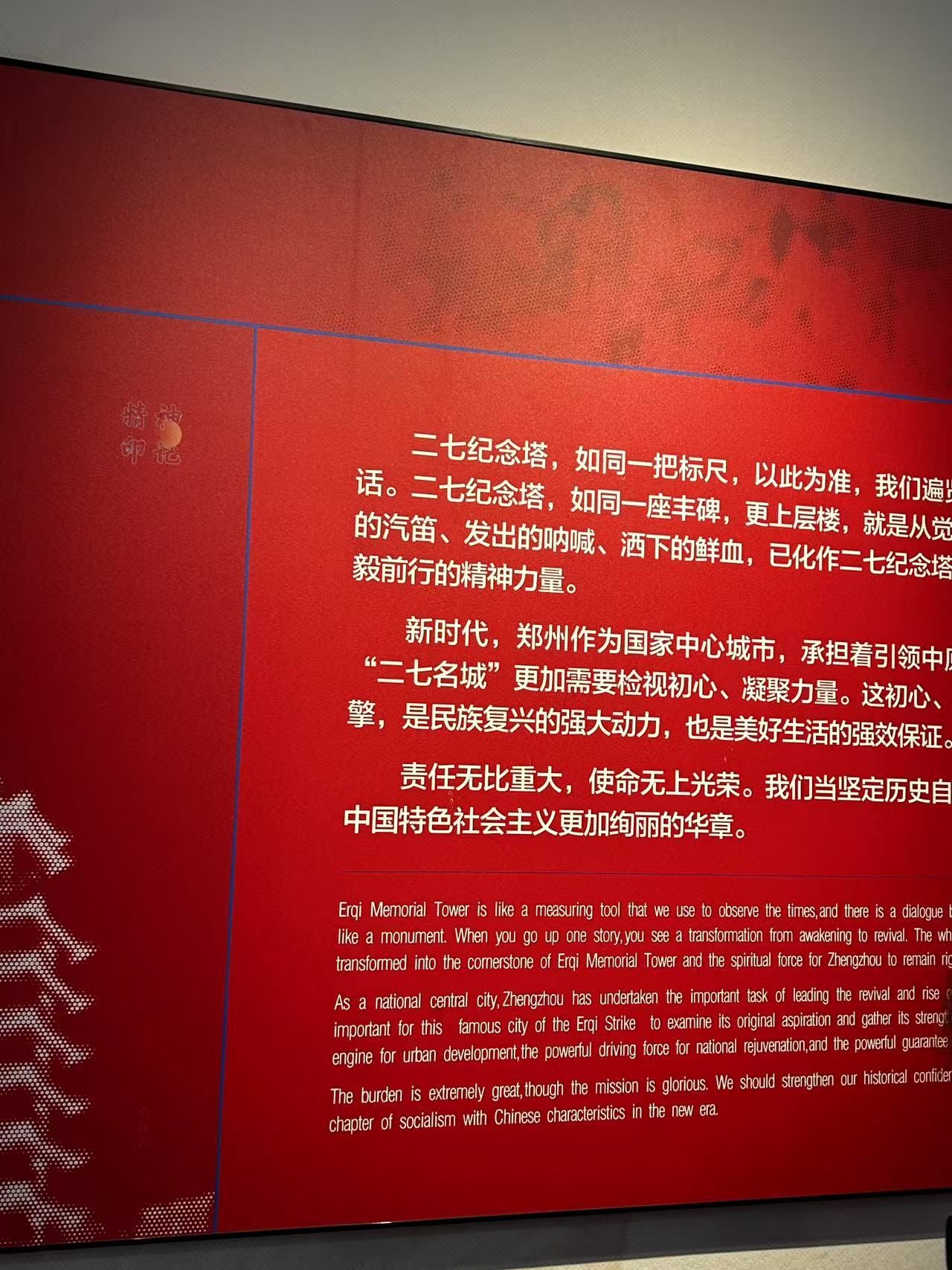 踏入展馆,“二七纪念塔精神阐释墙” 率先映入眼帘,文字诉说着二七纪念塔作为历史标尺与精神丰碑的意义,先辈们的热血与呐喊,凝练成城市前行的动力,让队员们初窥二七精神轮廓。