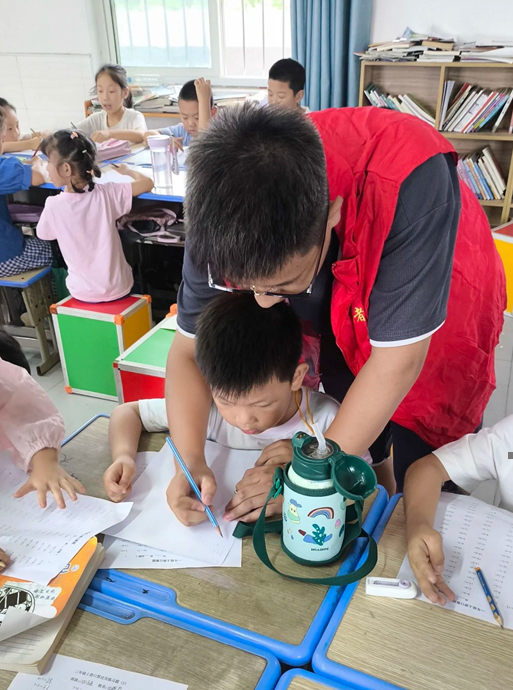 8 月 25 日上午 8 时 30 分,团队 7 名成员准时抵达高新区实验小学。在教学楼前,该校教务处主任王峰与值班教师早已等候,双方简单交流后,王峰主任带领队员们参观了教室、阅览室等活动场地,并再次强调:“这些孩子大多是外来务工人员子女,暑假父母忙于工作,学习上缺人指导,你们的到来真是解了燃眉之急。” 随后,队员们按照预案分组进入各班教室。