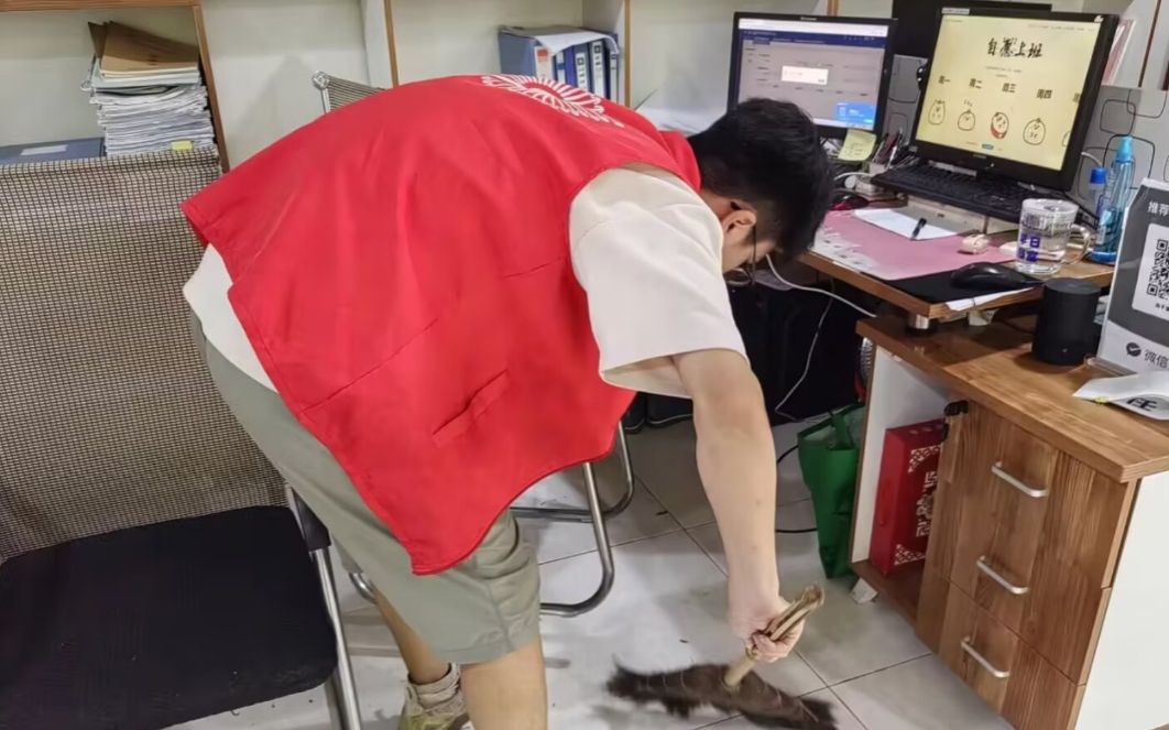 清运组的队员们刚上手就遇到了难题:废弃瓷砖边缘锋利,徒手搬运容易划伤。社区保洁员王师傅见状,主动拿来 10 副厚手套和 2 辆手推车,“这些瓷砖得轻拿轻放,碎块要单独装袋,不然扎破垃圾袋更麻烦。” 队员们听从指导,两人一组抬运整箱瓷砖,其他人则用铁锹将碎块归拢,再装入厚实的建筑垃圾袋。烈日下,队员们的 T 恤很快被汗水浸湿,脸上沾着灰尘,但没人停下休息。清洁组的工作同样不轻松,花坛里的塑料瓶被泥土埋了一半,队员们得蹲在地上用夹子一点点抠;公告栏上的小广告用胶水粘得极牢,队员汪明超发现先用水浸湿再铲的方法更有效,便立刻分享给其他队员,原本斑驳的公告栏渐渐露出干净的底色。