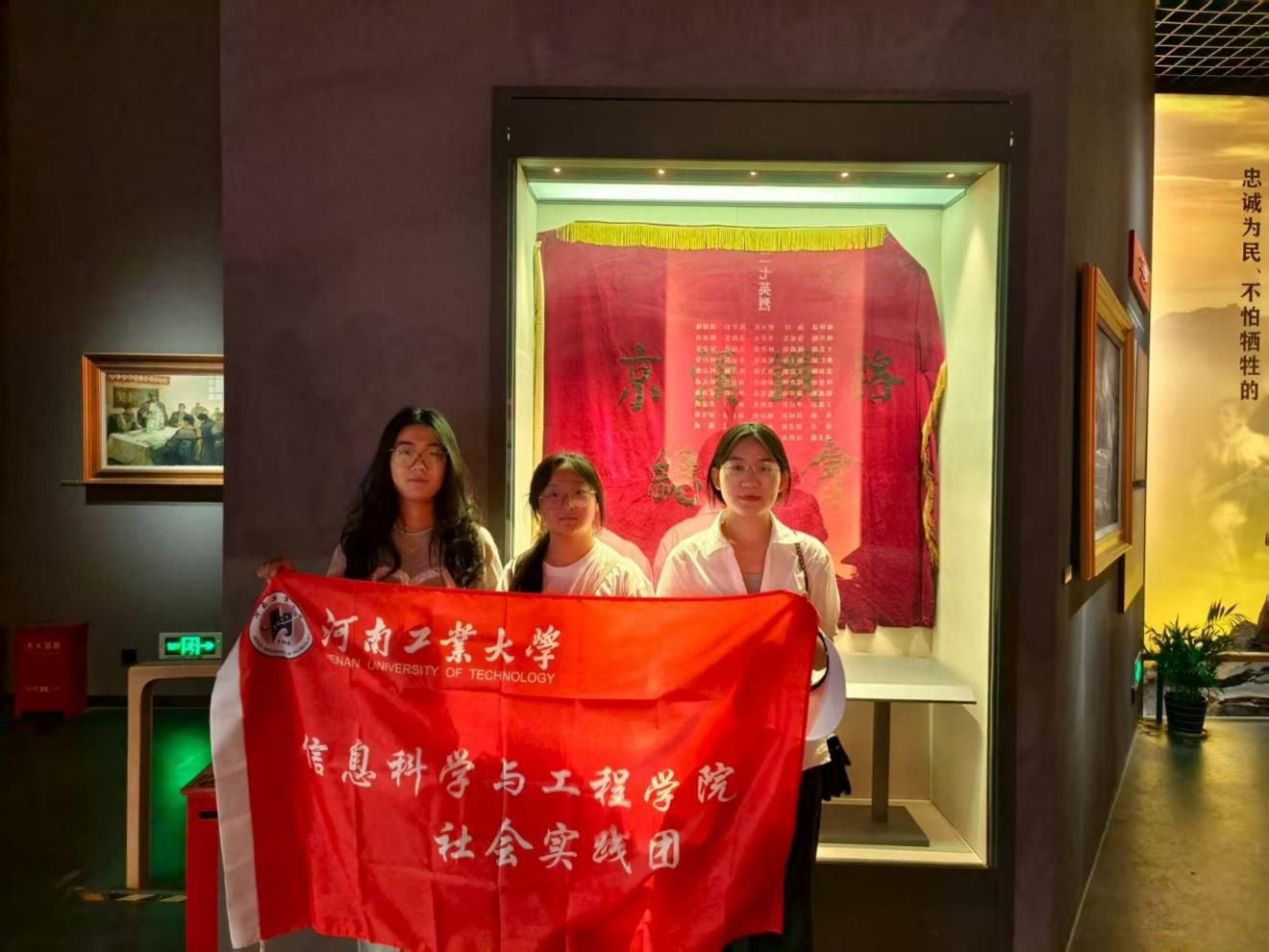 为深入探寻二七故事与二七精神,社会实践队员们怀着崇敬的心情对二七纪念堂“铁路修建”、“星星之火”、“革命烈焰”、“永恒丰碑”、“精神指引”、“传承弘扬”、“红色地标”、“城市记忆”和“百年辉煌”这九个部分进行了详细的参观。在参观过程中,团队成员在二七纪念堂内沿着展览区缓缓前行,仔细观看每一处史料,认真阅读革命先烈的光辉事迹,深刻了解了“工人运动的兴起与发展”的起因、经过以及深远影响。在参观完二七纪念堂后,团队成员们对二七故事与二七精神进行了深刻的讨论,感受到了工人团结一心、不屈不挠、敢于抗争的革命精神,被工人们的强大力量所感染,也对郑州这座城市有了新的认识。