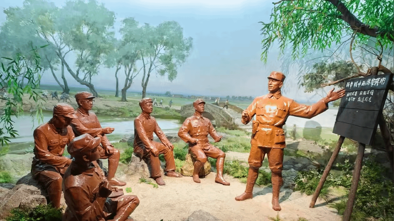 参观途中,一组游击战术讲解的复原场景吸引了队员众人的目光。雕塑生动展现了革命先辈们围坐一起,聆听战术讲解的情景。通过该场景,队员们仿佛穿越时空,亲历那段峥嵘岁月,深切感受到革命先辈的智慧与勇气。此次参观让队员们对革命历史有了更深刻的认识,也激励着团队传承红色基因,为实现中华民族伟大复兴贡献力量。