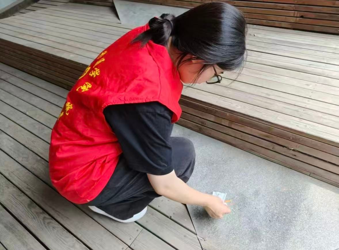 图 6 成员清理地面贴纸