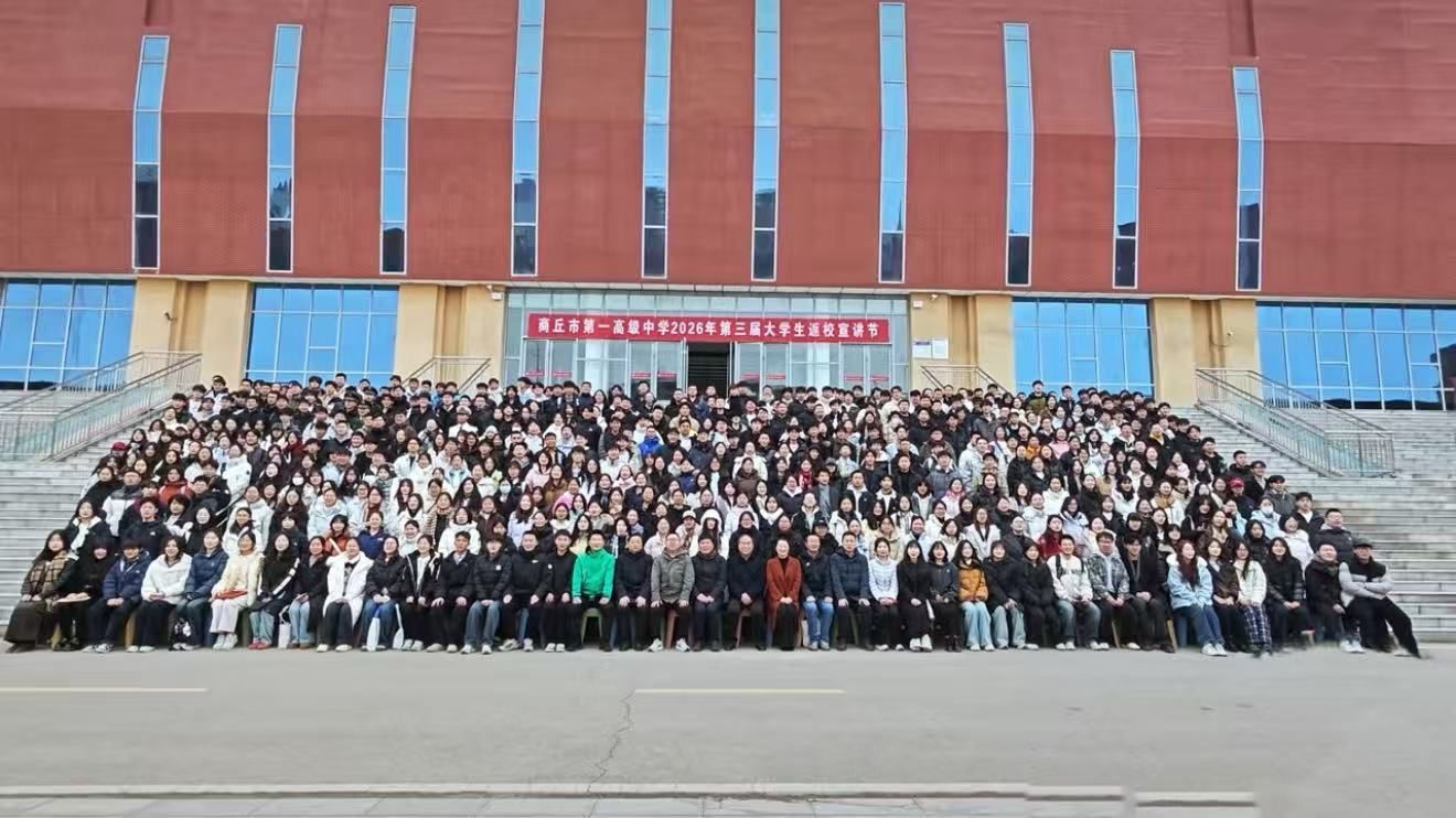 活动伊始,宣讲团全体成员在商丘市第一高级中学校园核心区域合影留念,成员们精神饱满,带着对母校的感恩之情与助力学弟学妹成长的责任感,正式开启此次宣讲之旅。