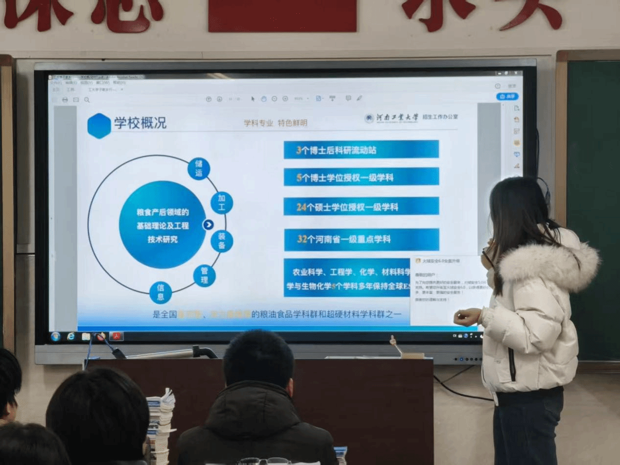针对专业选择痛点,团队通过学科特色 PPT,展开详解,突出 “3 个博士后科研流动站、5 个博士学位授权一级学科” 的学科架构,介绍粮油食品、超硬材料等特色学科群,以及麻豆tv