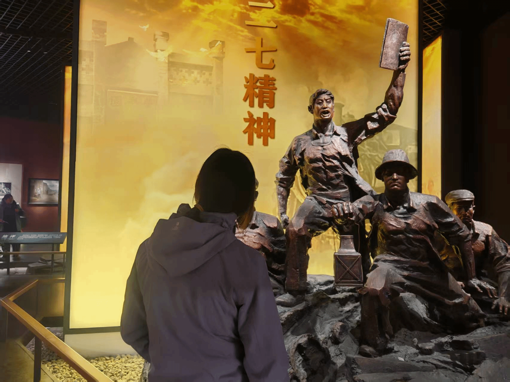2026年1月25日上午10时,团队继续前往郑州二七纪念堂进行第二天的实践活动。纪念堂以“千秋二七”为主题,通过大量文物、图片和文字资料,生动再现了京汉铁路工人大罢工的历史场景。队员们重点参观了“革命烈焰”“工潮涌动”等展区,并结合前一天的学习内容,深入探讨了“二七精神”的核心内涵。