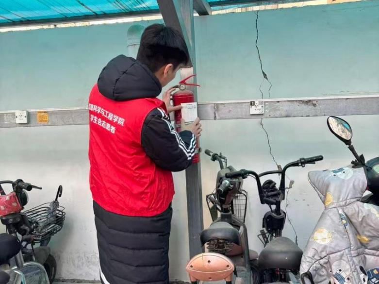 筑安全防线之梦,担排查隐患使命。1月23日,团队将视角投向社区消防安全。在“消防安全检查及科普”活动中,队员们系统检查了公共消防设施,确保灭火器、消火栓处于良好状态。针对电动车违规停放与充电等隐患,队员们主动规整车辆、清理通道,并向居民宣讲安全规范。此次排查不仅是专业知识的应用,更是团队主动担当,为筑牢社区安全“防火墙”、守护人民生命财产安全贡献力量的直接体现。