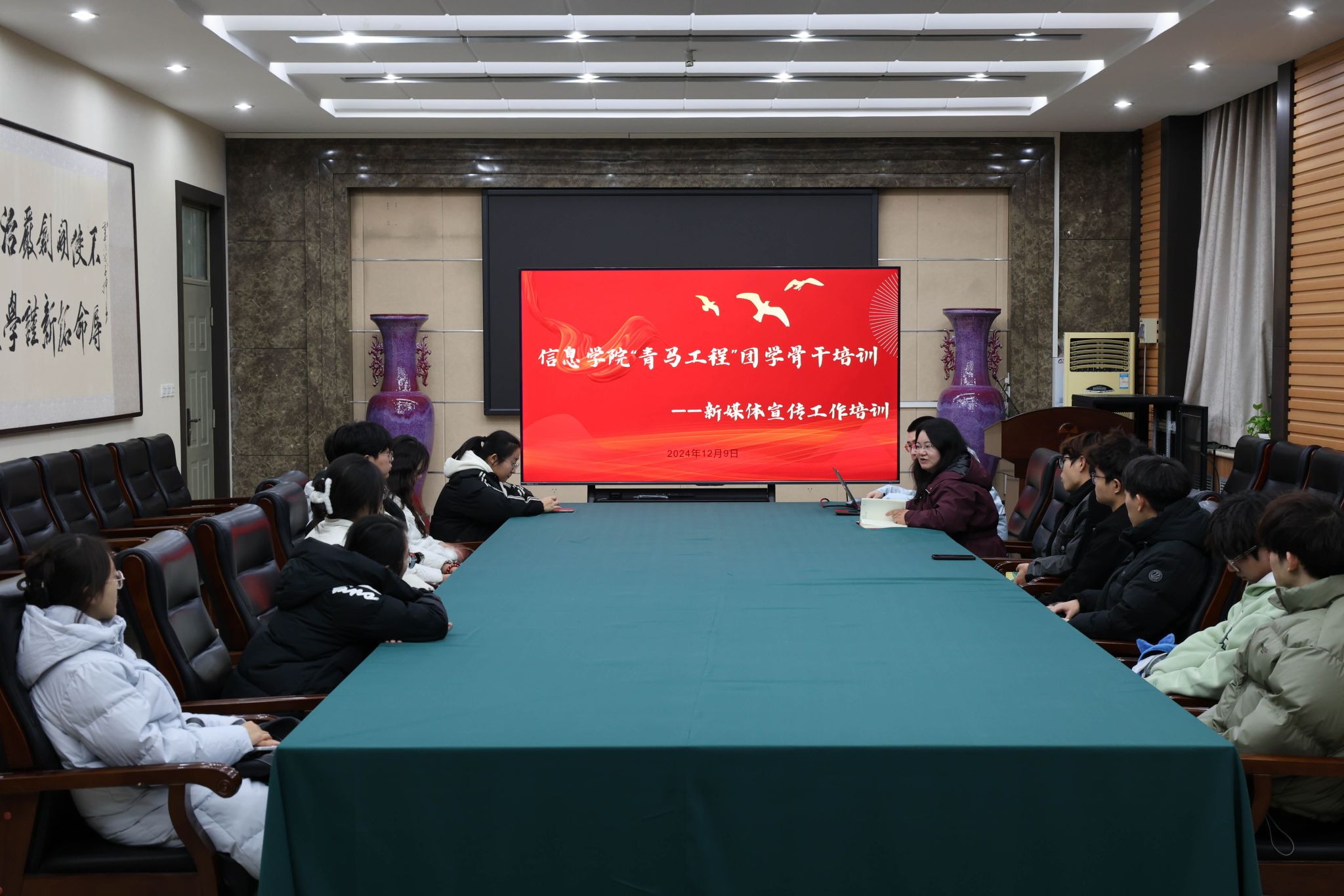 在6225会议室举办“青马工程”培训会,会议内容为新媒体技能相关培训。学院团委书记刘磊,辅导员王之瑞,院学生会各部门学生代表参加会议。